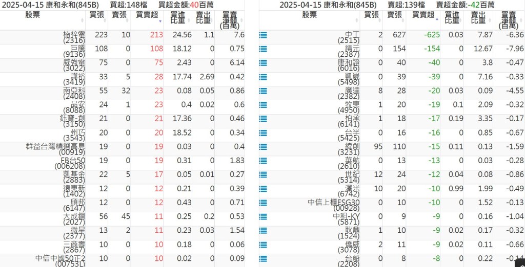 2025-0415關鍵券商買賣超 2025-04-15 股狗網小編 籌碼面每日資訊 發表留言 關鍵券商買賣超: 臺銀證券(1040): 台灣摩根士丹利(1470): 凱基台北(9268): 凱基信義(9216): 元大土城永寧(9875): 康和永和(845B) : 富邦建國(9658): 免責宣言 本網站文章所提供資訊僅供參考,並無任何推介買賣之意,投資人應自行承擔交易風險。 分享此文: 按一下即可分享至 X(在新視窗中開啟) X 按一下以分享至 Facebook(在新視窗中開啟) Facebook 喜歡 正在載入...