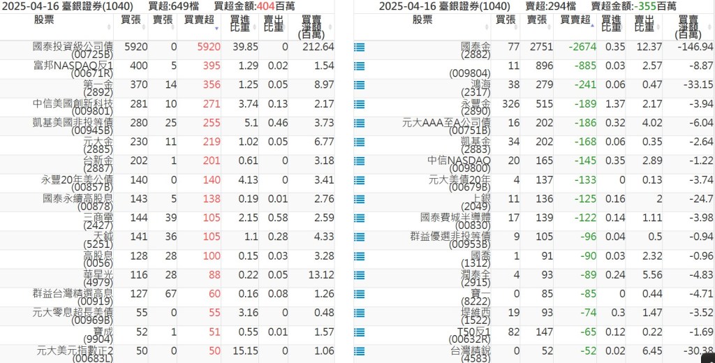 2025-0416關鍵券商買賣超 2025-04-16 股狗網小編 籌碼面每日資訊 發表留言 關鍵券商買賣超: 臺銀證券(1040): 台灣摩根士丹利(1470): 凱基台北(9268): 凱基信義(9216): 元大土城永寧(9875): 康和永和(845B) : 富邦建國(9658): 免責宣言 本網站文章所提供資訊僅供參考,並無任何推介買賣之意,投資人應自行承擔交易風險。 分享此文: 按一下即可分享至 X(在新視窗中開啟) X 按一下以分享至 Facebook(在新視窗中開啟) Facebook 喜歡 正在載入...