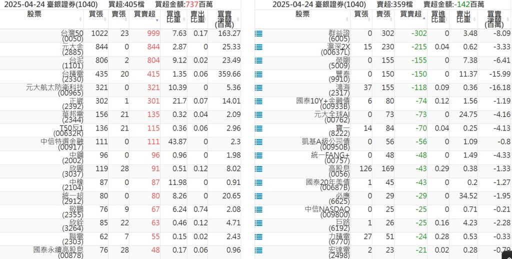 2025-0424關鍵券商買賣超 2025-04-24 股狗網小編 籌碼面每日資訊 發表留言 關鍵券商買賣超: 臺銀證券(1040): 台灣摩根士丹利(1470): 凱基台北(9268): 凱基信義(9216): 元大土城永寧(9875): 康和永和(845B) : 富邦建國(9658): 免責宣言 本網站文章所提供資訊僅供參考,並無任何推介買賣之意,投資人應自行承擔交易風險。 分享此文: 按一下即可分享至 X(在新視窗中開啟) X 按一下以分享至 Facebook(在新視窗中開啟) Facebook 喜歡 正在載入...