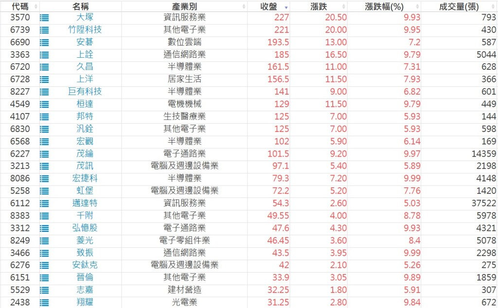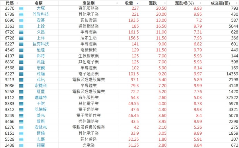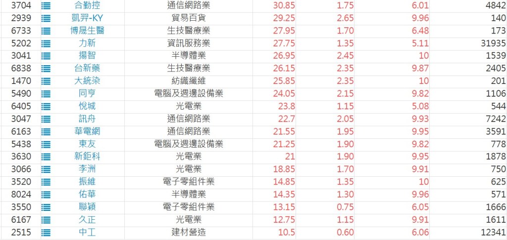 2025-0428日新高爆量上漲股 2025-04-28 股狗網小編 選股條件 發表留言 利用股狗選股的選股條件可以【挑選突破20日新高,爆量上漲起漲點股票】 1.股狗選股 https://www.stockdog.com.tw 2.選股條件: a.收盤價創20日新高 b.當日漲幅 > 2% C.成交量大於5日均量2倍 免責宣言 本網站文章所提供資訊僅供參考,並無任何推介買賣之意,投資人應自行承擔交易風險。 分享此文: 按一下即可分享至 X(在新視窗中開啟) X 按一下以分享至 Facebook(在新視窗中開啟) Facebook 喜歡 正在載入...