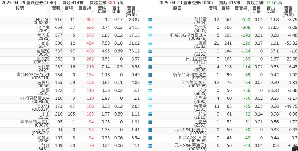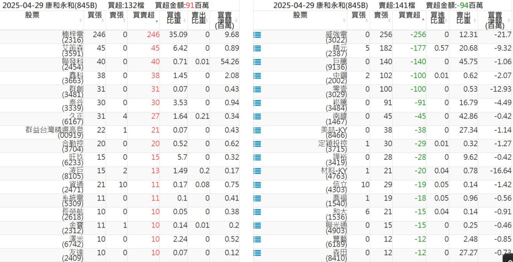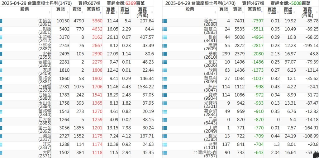 2025-0429關鍵券商買賣超 2025-04-29 股狗網小編 籌碼面每日資訊 發表留言 關鍵券商買賣超: 臺銀證券(1040): 台灣摩根士丹利(1470): 凱基台北(9268): 凱基信義(9216): 元大土城永寧(9875): 康和永和(845B) : 富邦建國(9658): 免責宣言 本網站文章所提供資訊僅供參考,並無任何推介買賣之意,投資人應自行承擔交易風險。 分享此文: 按一下即可分享至 X(在新視窗中開啟) X 按一下以分享至 Facebook(在新視窗中開啟) Facebook 喜歡 正在載入...