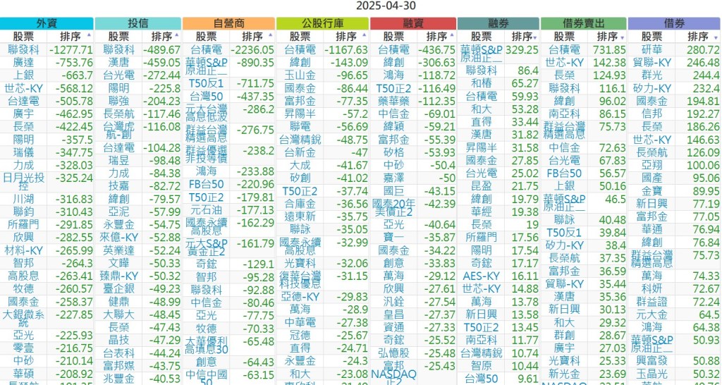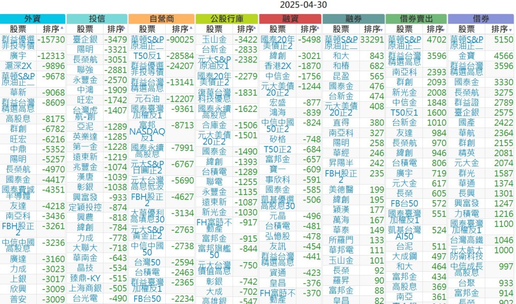 2025-0430【外資、投信】買賣超個股 2025-04-30 股狗網小編 投資誌-大盤 發表留言 上市:【外資、投信】買超(依金額) (單位:百萬) 上市:【外資、投信】賣超(依金額) (單位:百萬) 上市:【外資、投信】買超(依張數) (單位:張數) 上市:【外資、投信】賣超(依張數) (單位:張數) 免責宣言 本網站文章所提供資訊僅供參考,並無任何推介買賣之意,投資人應自行承擔交易風險。 分享此文: 按一下即可分享至 X(在新視窗中開啟) X 按一下以分享至 Facebook(在新視窗中開啟) Facebook 喜歡 正在載入...