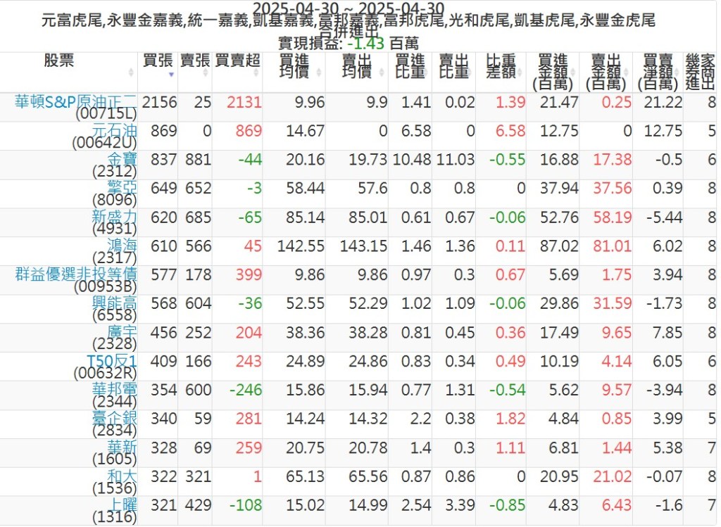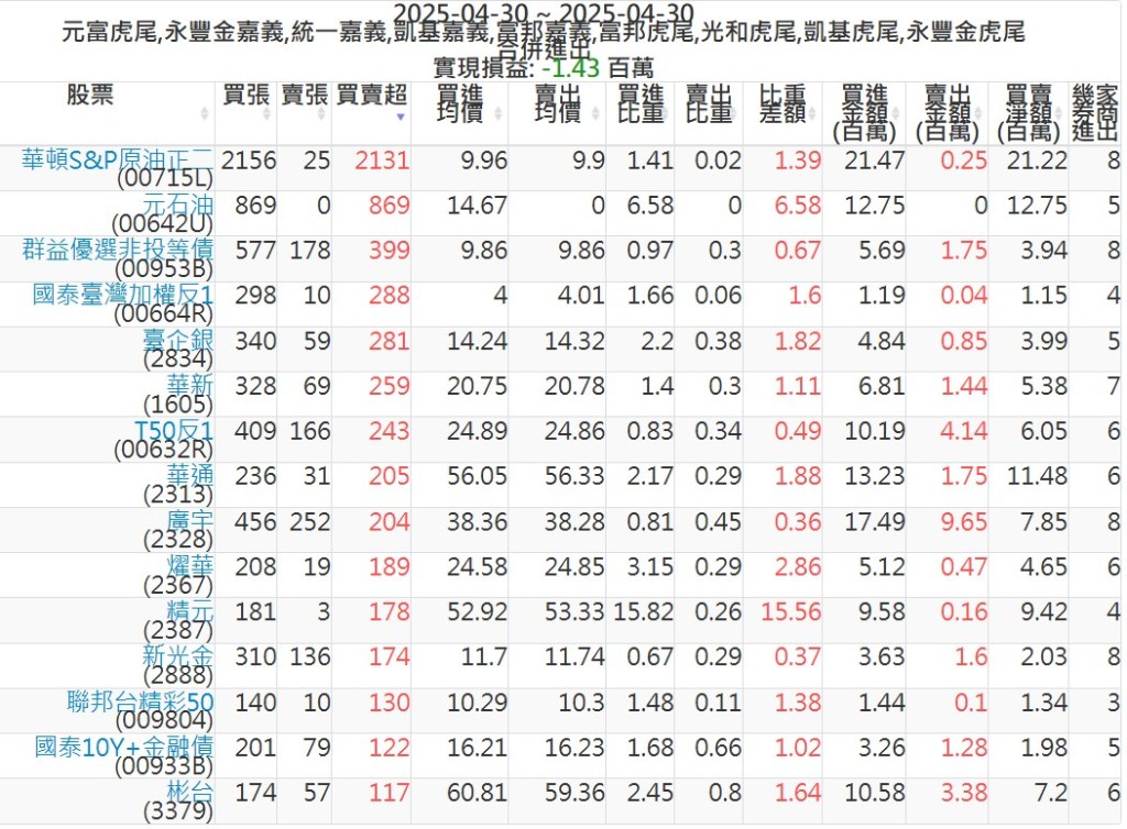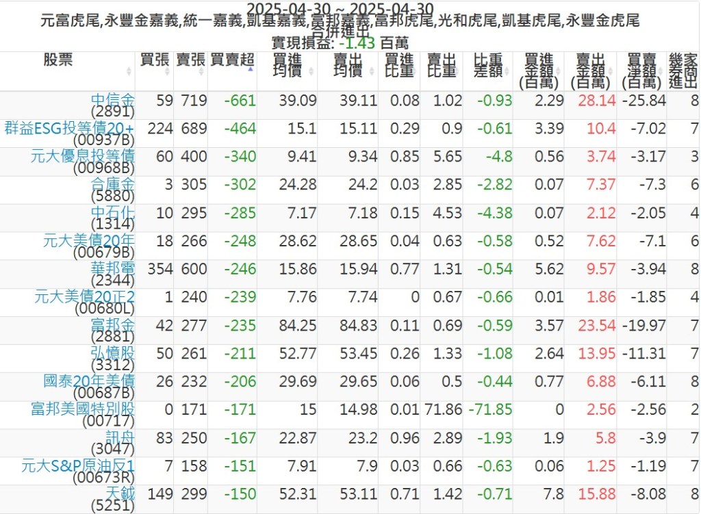 2025-0430主力買賣超個股 2025-04-30 股狗網小編 籌碼面每日資訊 發表留言 可參考下文 『如何查詢當沖、隔日沖分公司券商買賣』 主力當沖券商: 『元富虎尾』,『永豐金嘉義』,『統一嘉義』,『凱基嘉義』,『富邦嘉義』,『富邦虎尾』,『光和虎尾』,『凱基虎尾』,『永豐金虎尾』。 『當沖標的』 『買超股票』 『賣超股票』 免責宣言 本網站文章所提供資訊僅供參考,並無任何推介買賣之意,投資人應自行承擔交易風險。 分享此文: 按一下即可分享至 X(在新視窗中開啟) X 按一下以分享至 Facebook(在新視窗中開啟) Facebook 喜歡 正在載入...