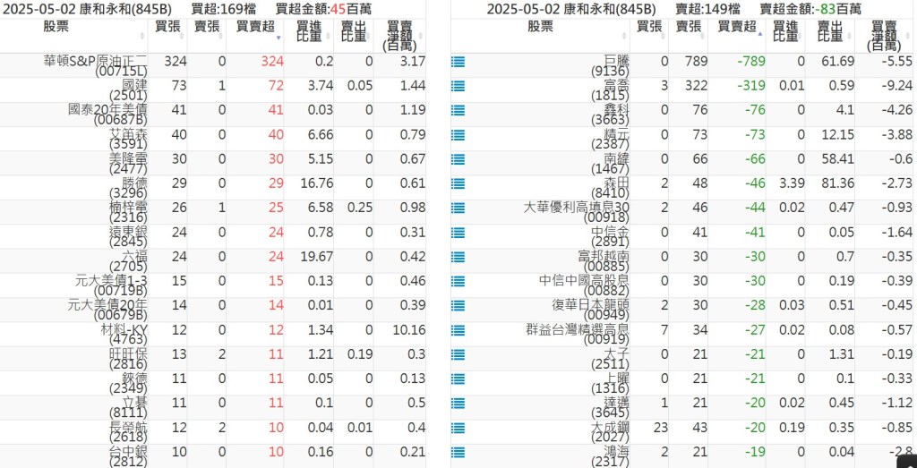 2025-0502關鍵券商買賣超 2025-05-02 股狗網小編 籌碼面每日資訊 發表留言 關鍵券商買賣超: 臺銀證券(1040): 台灣摩根士丹利(1470): 凱基台北(9268): 凱基信義(9216): 元大土城永寧(9875): 康和永和(845B) : 富邦建國(9658): 免責宣言 本網站文章所提供資訊僅供參考,並無任何推介買賣之意,投資人應自行承擔交易風險。 分享此文: 按一下即可分享至 X(在新視窗中開啟) X 按一下以分享至 Facebook(在新視窗中開啟) Facebook 喜歡 正在載入...
