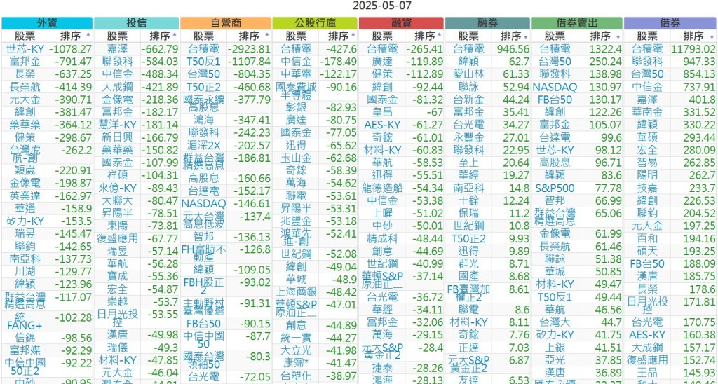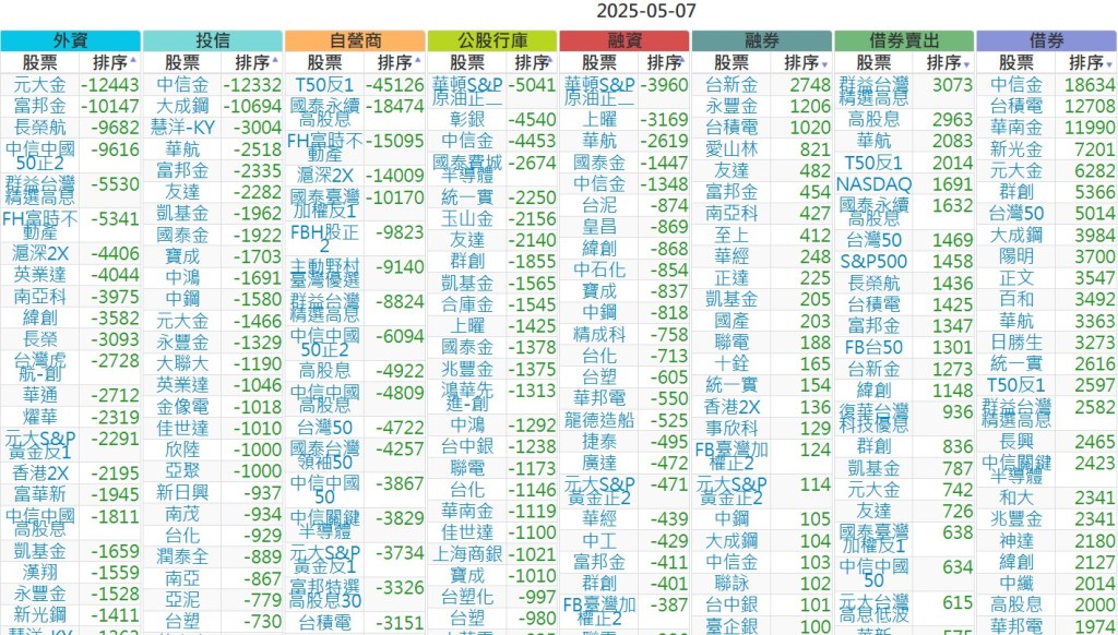 2025-0507【外資、投信】買賣超個股 2025-05-07 股狗網小編 投資誌-大盤 發表留言 上市:【外資、投信】買超(依金額) (單位:百萬) 上市:【外資、投信】賣超(依金額) (單位:百萬) 上市:【外資、投信】買超(依張數) (單位:張數) 上市:【外資、投信】賣超(依張數) (單位:張數) 免責宣言 本網站文章所提供資訊僅供參考,並無任何推介買賣之意,投資人應自行承擔交易風險。 分享此文: 按一下即可分享至 X(在新視窗中開啟) X 按一下以分享至 Facebook(在新視窗中開啟) Facebook 喜歡 正在載入...