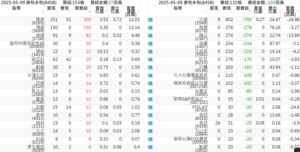 2025-0509關鍵券商買賣超 2025-05-09 股狗網小編 籌碼面每日資訊 發表留言 關鍵券商買賣超: 臺銀證券(1040): 台灣摩根士丹利(1470): 凱基台北(9268): 凱基信義(9216): 元大土城永寧(9875): 康和永和(845B) : 富邦建國(9658): 免責宣言 本網站文章所提供資訊僅供參考,並無任何推介買賣之意,投資人應自行承擔交易風險。 分享此文: 按一下即可分享至 X(在新視窗中開啟) X 按一下以分享至 Facebook(在新視窗中開啟) Facebook 喜歡 正在載入...