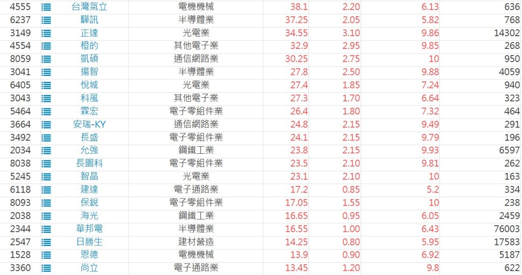 2025-0512日新高爆量上漲股 2025-05-12 股狗網小編 選股條件 發表留言 利用股狗選股的選股條件可以【挑選突破20日新高,爆量上漲起漲點股票】 1.股狗選股 https://www.stockdog.com.tw 2.選股條件: a.收盤價創20日新高 b.當日漲幅 > 2% C.成交量大於5日均量2倍 免責宣言 本網站文章所提供資訊僅供參考,並無任何推介買賣之意,投資人應自行承擔交易風險。 分享此文: 按一下即可分享至 X(在新視窗中開啟) X 按一下以分享至 Facebook(在新視窗中開啟) Facebook 喜歡 正在載入...