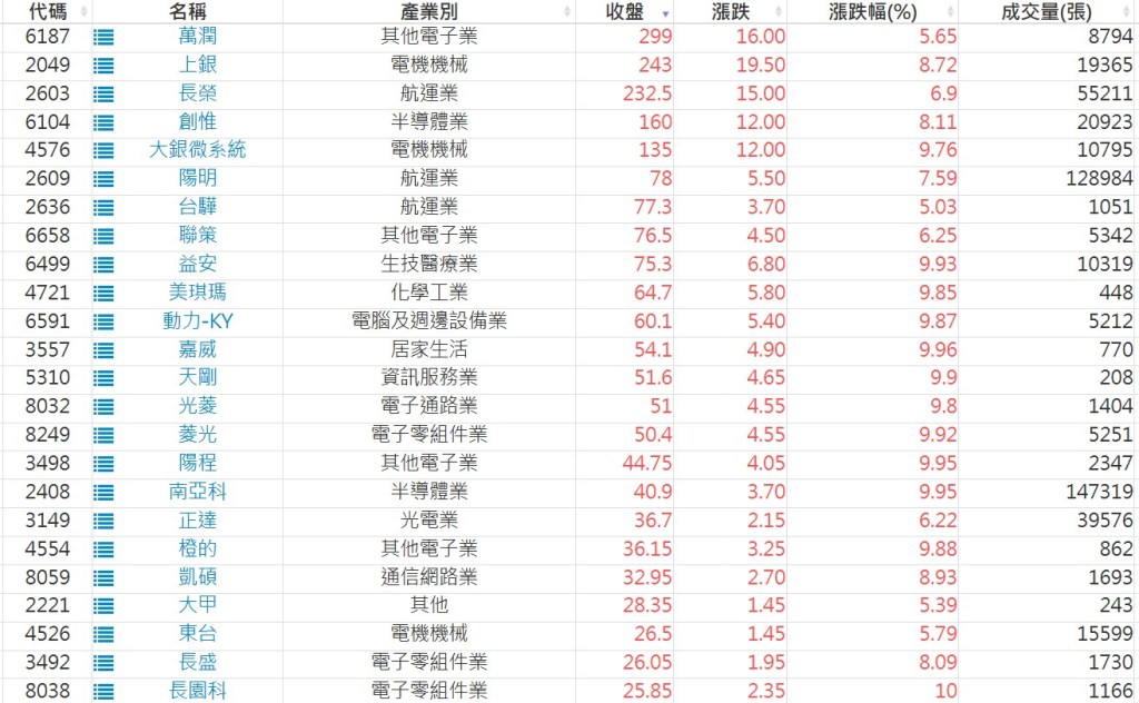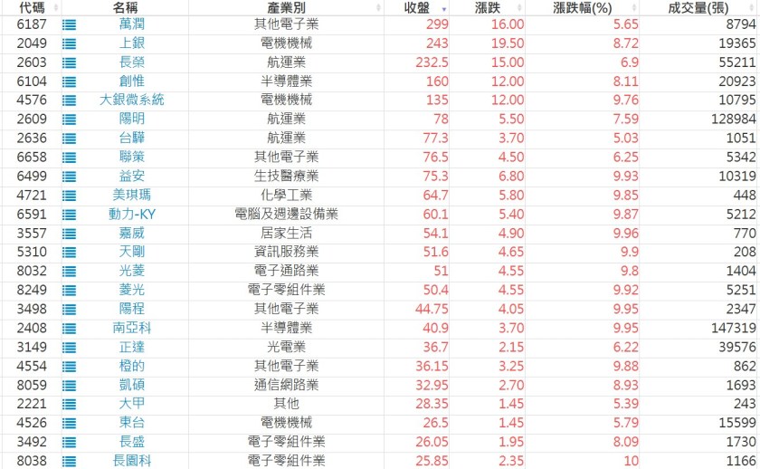 2025-0513日新高爆量上漲股 2025-05-13 股狗網小編 選股條件 發表留言 利用股狗選股的選股條件可以【挑選突破20日新高,爆量上漲起漲點股票】 1.股狗選股 https://www.stockdog.com.tw 2.選股條件: a.收盤價創20日新高 b.當日漲幅 > 2% C.成交量大於5日均量2倍 免責宣言 本網站文章所提供資訊僅供參考,並無任何推介買賣之意,投資人應自行承擔交易風險。 分享此文: 分享到 X(在新視窗中開啟) X 分享到 Facebook(在新視窗中開啟) Facebook 喜歡 正在載入...