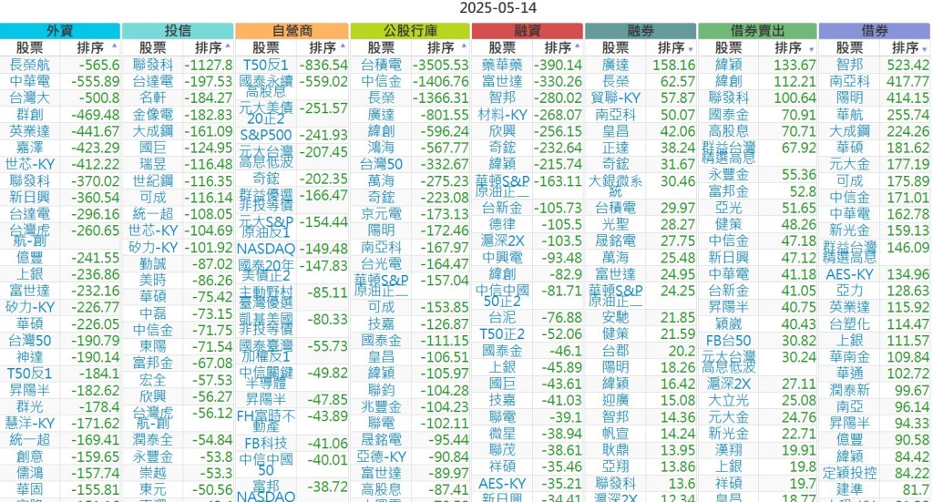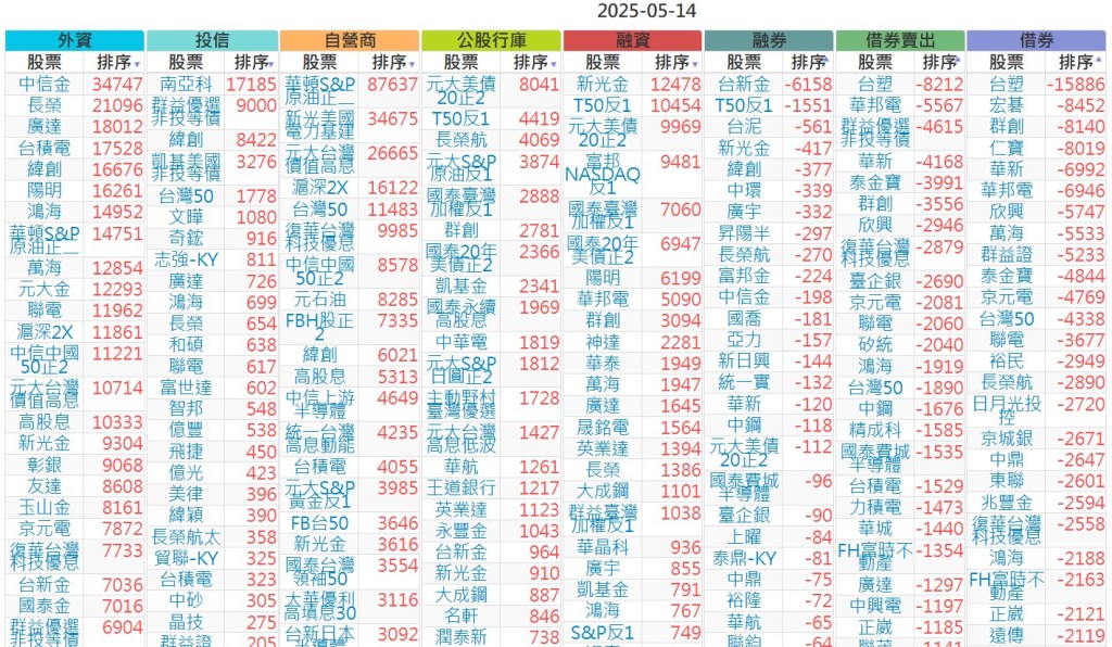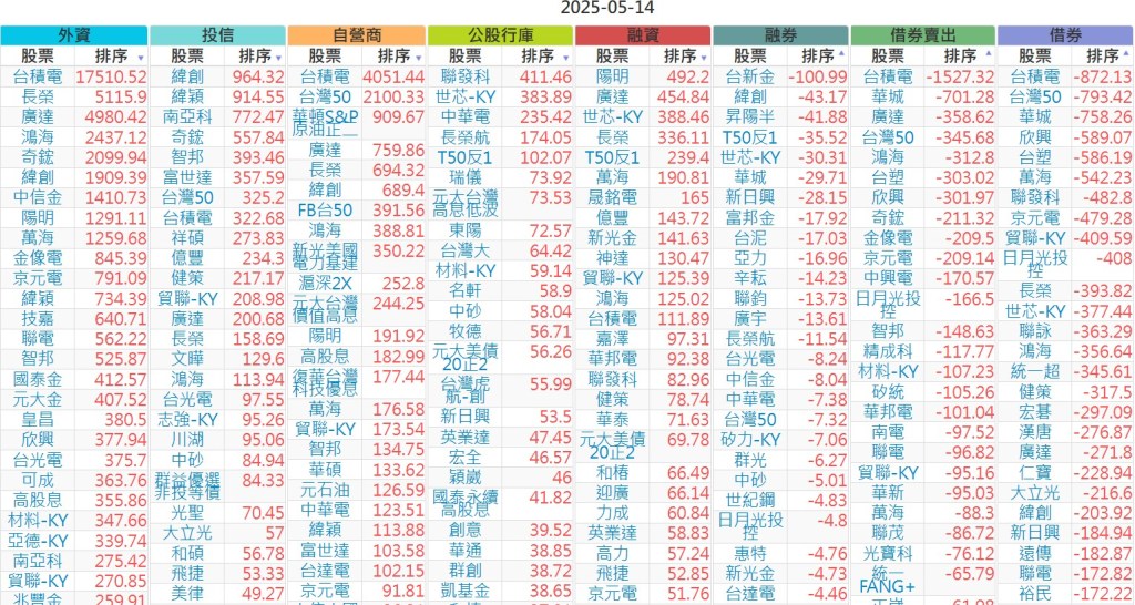 2025-0514【外資、投信】買賣超個股 2025-05-14 股狗網小編 投資誌-大盤 發表留言 上市:【外資、投信】買超(依金額) (單位:百萬) 上市:【外資、投信】賣超(依金額) (單位:百萬) 上市:【外資、投信】買超(依張數) (單位:張數) 上市:【外資、投信】賣超(依張數) (單位:張數) 免責宣言 本網站文章所提供資訊僅供參考,並無任何推介買賣之意,投資人應自行承擔交易風險。 分享此文: 按一下即可分享至 X(在新視窗中開啟) X 按一下以分享至 Facebook(在新視窗中開啟) Facebook 喜歡 正在載入...