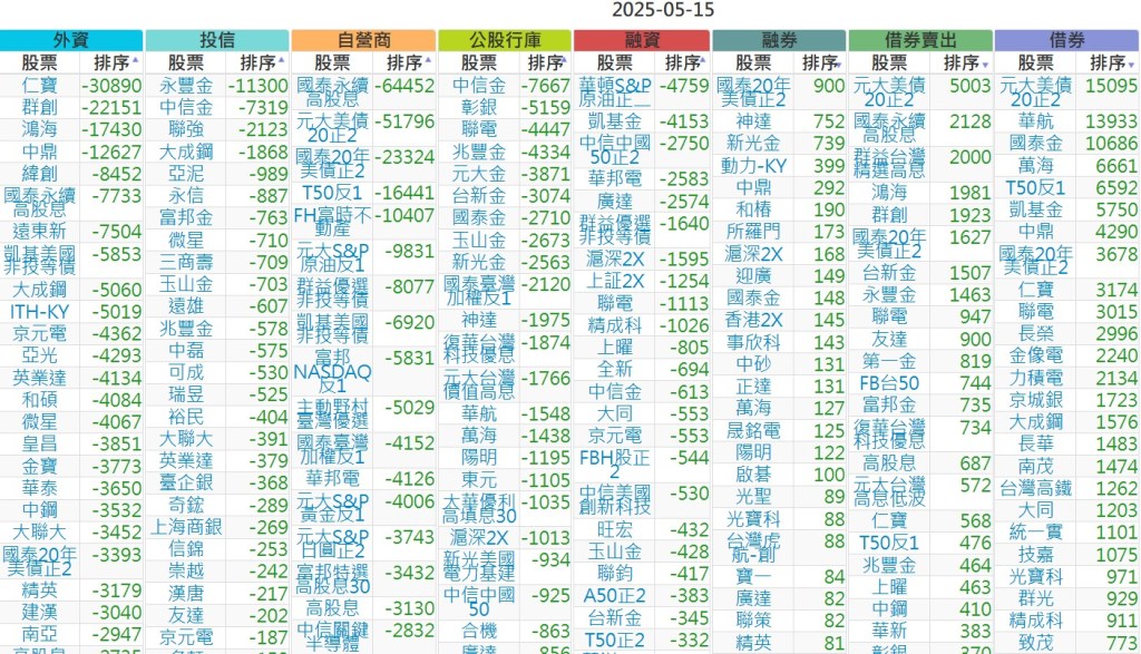 2025-0515【外資、投信】買賣超個股 2025-05-15 股狗網小編 投資誌-大盤 發表留言 上市:【外資、投信】買超(依金額) (單位:百萬) 上市:【外資、投信】賣超(依金額) (單位:百萬) 上市:【外資、投信】買超(依張數) (單位:張數) 上市:【外資、投信】賣超(依張數) (單位:張數) 免責宣言 本網站文章所提供資訊僅供參考,並無任何推介買賣之意,投資人應自行承擔交易風險。 分享此文: 按一下即可分享至 X(在新視窗中開啟) X 按一下以分享至 Facebook(在新視窗中開啟) Facebook 喜歡 正在載入...