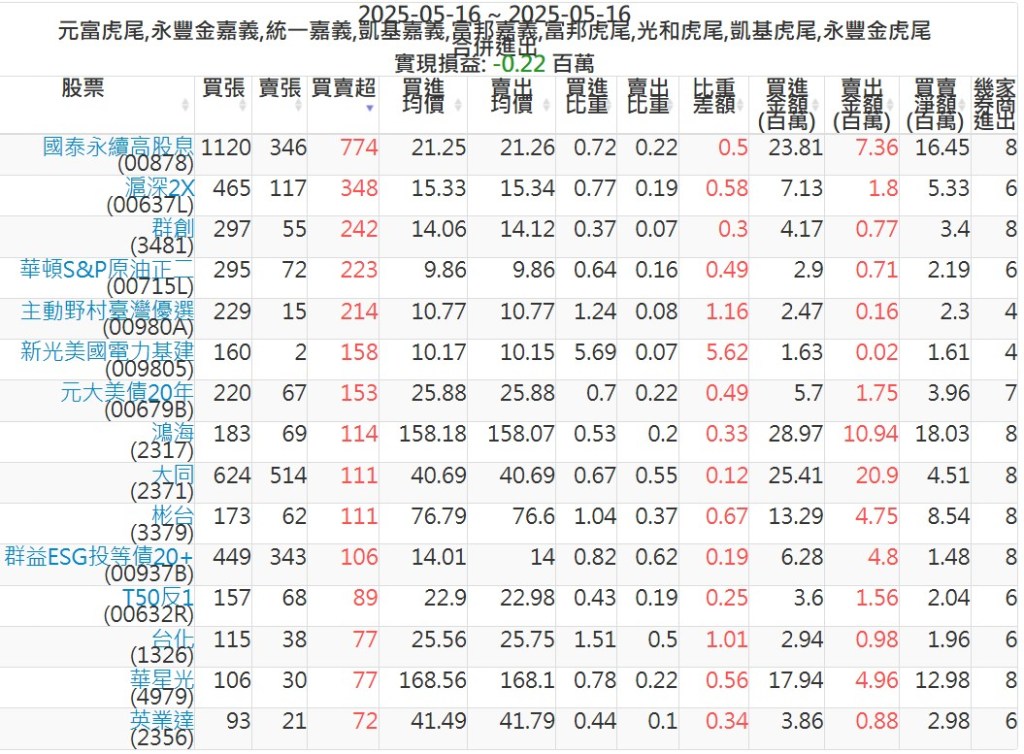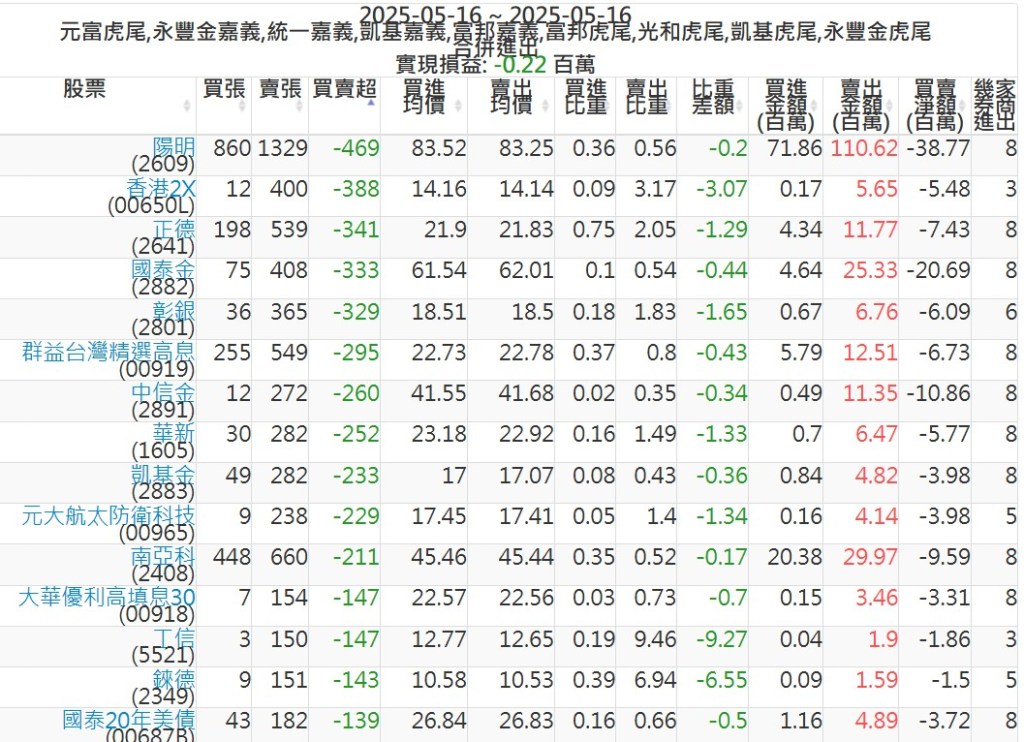 2025-0516主力買賣超個股 2025-05-16 股狗網小編 籌碼面每日資訊 發表留言 可參考下文 『如何查詢當沖、隔日沖分公司券商買賣』 主力當沖券商: 『元富虎尾』,『永豐金嘉義』,『統一嘉義』,『凱基嘉義』,『富邦嘉義』,『富邦虎尾』,『光和虎尾』,『凱基虎尾』,『永豐金虎尾』。 『當沖標的』 『買超股票』 『賣超股票』 免責宣言 本網站文章所提供資訊僅供參考,並無任何推介買賣之意,投資人應自行承擔交易風險。 分享此文: 按一下即可分享至 X(在新視窗中開啟) X 按一下以分享至 Facebook(在新視窗中開啟) Facebook 喜歡 正在載入...