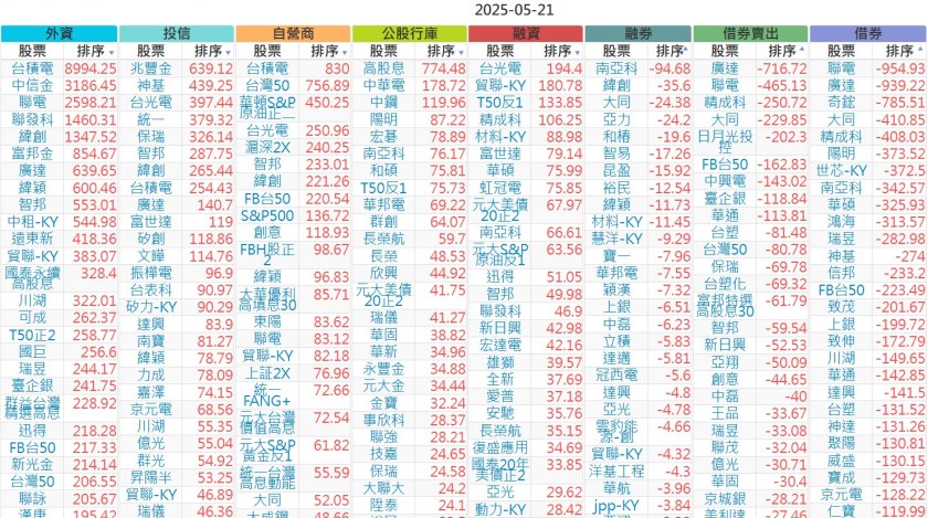 2025-0521【外資、投信】買賣超個股 2025-05-21 股狗網小編 投資誌-大盤 發表留言 上市:【外資、投信】買超(依金額) (單位:百萬) 上市:【外資、投信】賣超(依金額) (單位:百萬) 上市:【外資、投信】買超(依張數) (單位:張數) 上市:【外資、投信】賣超(依張數) (單位:張數) 免責宣言 本網站文章所提供資訊僅供參考,並無任何推介買賣之意,投資人應自行承擔交易風險。 分享此文: 按一下即可分享至 X(在新視窗中開啟) X 按一下以分享至 Facebook(在新視窗中開啟) Facebook 喜歡 正在載入...