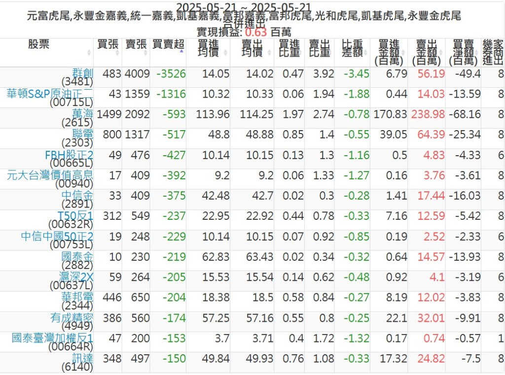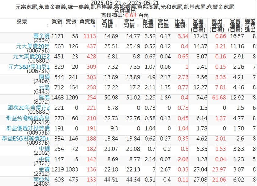 2025-0521主力買賣超個股 2025-05-21 股狗網小編 籌碼面每日資訊 發表留言 可參考下文 『如何查詢當沖、隔日沖分公司券商買賣』 主力當沖券商: 『元富虎尾』,『永豐金嘉義』,『統一嘉義』,『凱基嘉義』,『富邦嘉義』,『富邦虎尾』,『光和虎尾』,『凱基虎尾』,『永豐金虎尾』。 『當沖標的』 『買超股票』 『賣超股票』 免責宣言 本網站文章所提供資訊僅供參考,並無任何推介買賣之意,投資人應自行承擔交易風險。 分享此文: 按一下即可分享至 X(在新視窗中開啟) X 按一下以分享至 Facebook(在新視窗中開啟) Facebook 喜歡 正在載入...