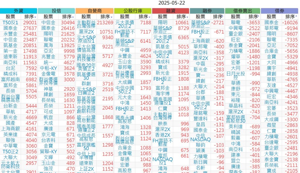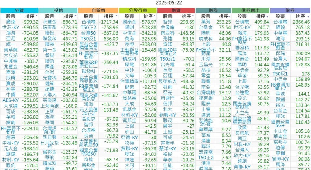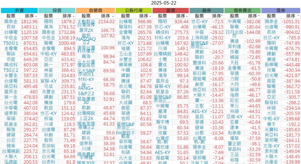 2025-0522【外資、投信】買賣超個股 2025-05-22 股狗網小編 投資誌-大盤 發表留言 上市:【外資、投信】買超(依金額) (單位:百萬) 上市:【外資、投信】賣超(依金額) (單位:百萬) 上市:【外資、投信】買超(依張數) (單位:張數) 上市:【外資、投信】賣超(依張數) (單位:張數) 免責宣言 本網站文章所提供資訊僅供參考,並無任何推介買賣之意,投資人應自行承擔交易風險。 分享此文: 按一下即可分享至 X(在新視窗中開啟) X 按一下以分享至 Facebook(在新視窗中開啟) Facebook 喜歡 正在載入...