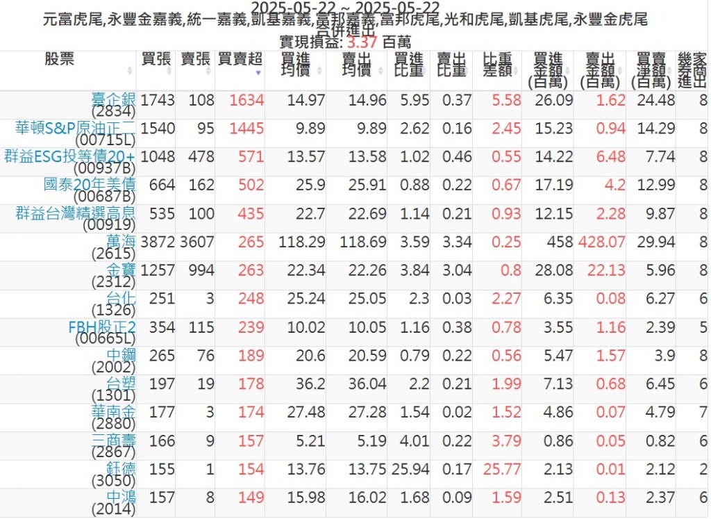 2025-0522主力買賣超個股 2025-05-22 股狗網小編 籌碼面每日資訊 發表留言 可參考下文 『如何查詢當沖、隔日沖分公司券商買賣』 主力當沖券商: 『元富虎尾』,『永豐金嘉義』,『統一嘉義』,『凱基嘉義』,『富邦嘉義』,『富邦虎尾』,『光和虎尾』,『凱基虎尾』,『永豐金虎尾』。 『當沖標的』 『買超股票』 『賣超股票』 免責宣言 本網站文章所提供資訊僅供參考,並無任何推介買賣之意,投資人應自行承擔交易風險。 分享此文: 按一下即可分享至 X(在新視窗中開啟) X 按一下以分享至 Facebook(在新視窗中開啟) Facebook 喜歡 正在載入...