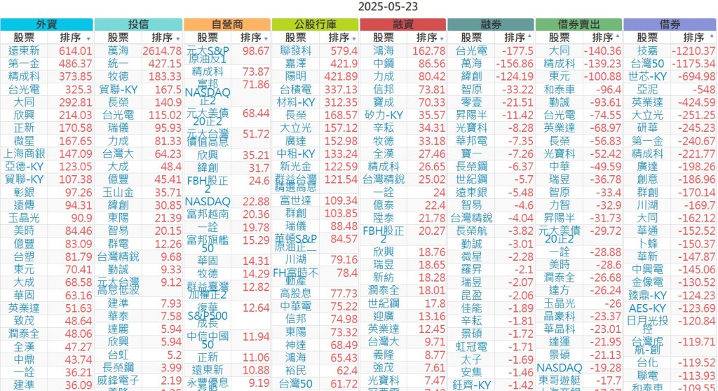 2025-0523【外資、投信】買賣超個股 2025-05-23 股狗網小編 投資誌-大盤 發表留言 上市:【外資、投信】買超(依金額) (單位:百萬) 上市:【外資、投信】賣超(依金額) (單位:百萬) 上市:【外資、投信】買超(依張數) (單位:張數) 上市:【外資、投信】賣超(依張數) (單位:張數) 免責宣言 本網站文章所提供資訊僅供參考,並無任何推介買賣之意,投資人應自行承擔交易風險。 分享此文: 按一下即可分享至 X(在新視窗中開啟) X 按一下以分享至 Facebook(在新視窗中開啟) Facebook 喜歡 正在載入...