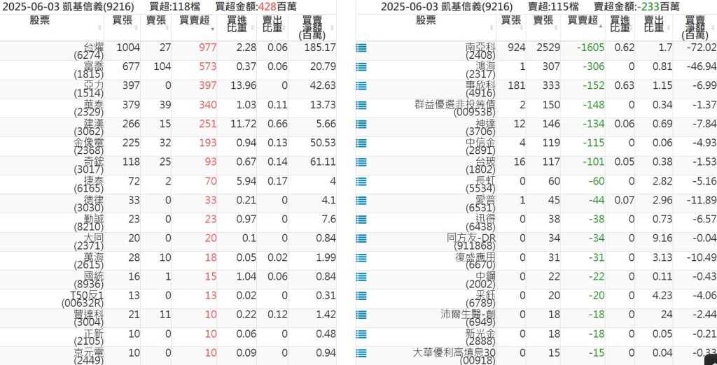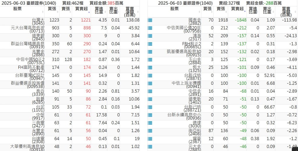 2025-0603關鍵券商買賣超 2025-06-03 股狗網小編 籌碼面每日資訊 發表留言 關鍵券商買賣超: 臺銀證券(1040): 台灣摩根士丹利(1470): 凱基台北(9268): 凱基信義(9216): 元大土城永寧(9875): 康和永和(845B) : 富邦建國(9658): 免責宣言 本網站文章所提供資訊僅供參考,並無任何推介買賣之意,投資人應自行承擔交易風險。 分享此文: 按一下即可分享至 X(在新視窗中開啟) X 按一下以分享至 Facebook(在新視窗中開啟) Facebook 喜歡 正在載入...