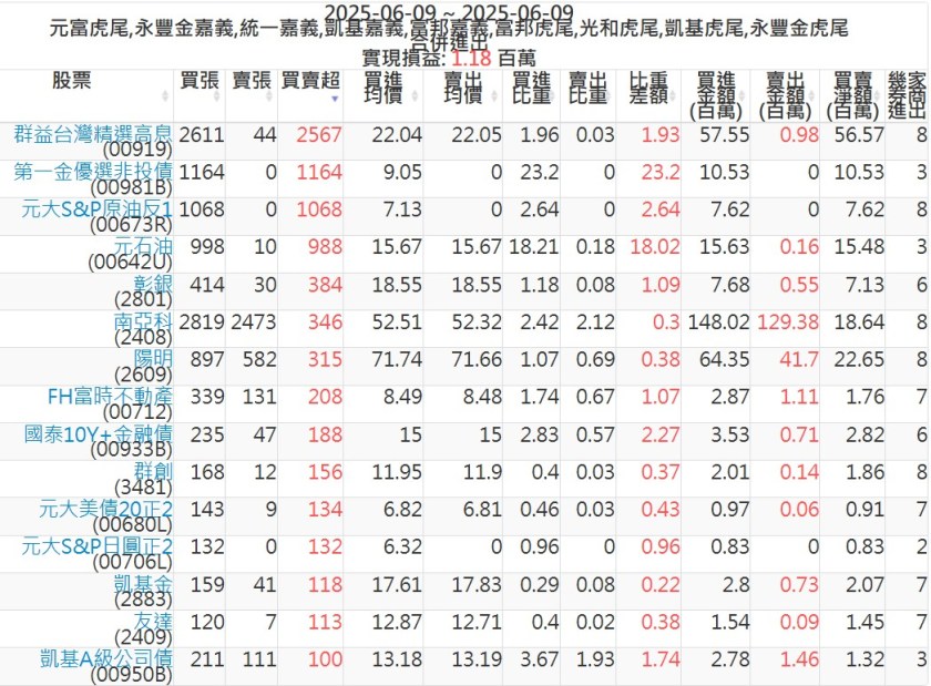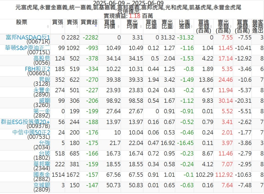2025-0609主力買賣超個股 2025-06-09 股狗網小編 籌碼面每日資訊 發表留言 可參考下文 『如何查詢當沖、隔日沖分公司券商買賣』 主力當沖券商: 『元富虎尾』,『永豐金嘉義』,『統一嘉義』,『凱基嘉義』,『富邦嘉義』,『富邦虎尾』,『光和虎尾』,『凱基虎尾』,『永豐金虎尾』。 『當沖標的』 『買超股票』 『賣超股票』 免責宣言 本網站文章所提供資訊僅供參考,並無任何推介買賣之意,投資人應自行承擔交易風險。 分享此文: 按一下即可分享至 X(在新視窗中開啟) X 按一下以分享至 Facebook(在新視窗中開啟) Facebook 喜歡 正在載入...