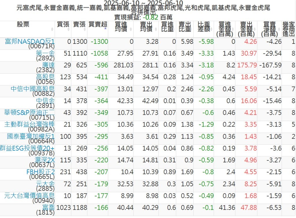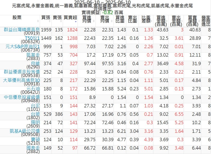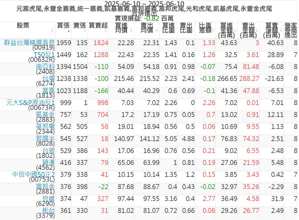 2025-0610主力買賣超個股 2025-06-10 股狗網小編 籌碼面每日資訊 發表留言 可參考下文 『如何查詢當沖、隔日沖分公司券商買賣』 主力當沖券商: 『元富虎尾』,『永豐金嘉義』,『統一嘉義』,『凱基嘉義』,『富邦嘉義』,『富邦虎尾』,『光和虎尾』,『凱基虎尾』,『永豐金虎尾』。 『當沖標的』 『買超股票』 『賣超股票』 免責宣言 本網站文章所提供資訊僅供參考,並無任何推介買賣之意,投資人應自行承擔交易風險。 分享此文: 按一下即可分享至 X(在新視窗中開啟) X 按一下以分享至 Facebook(在新視窗中開啟) Facebook 喜歡 正在載入...