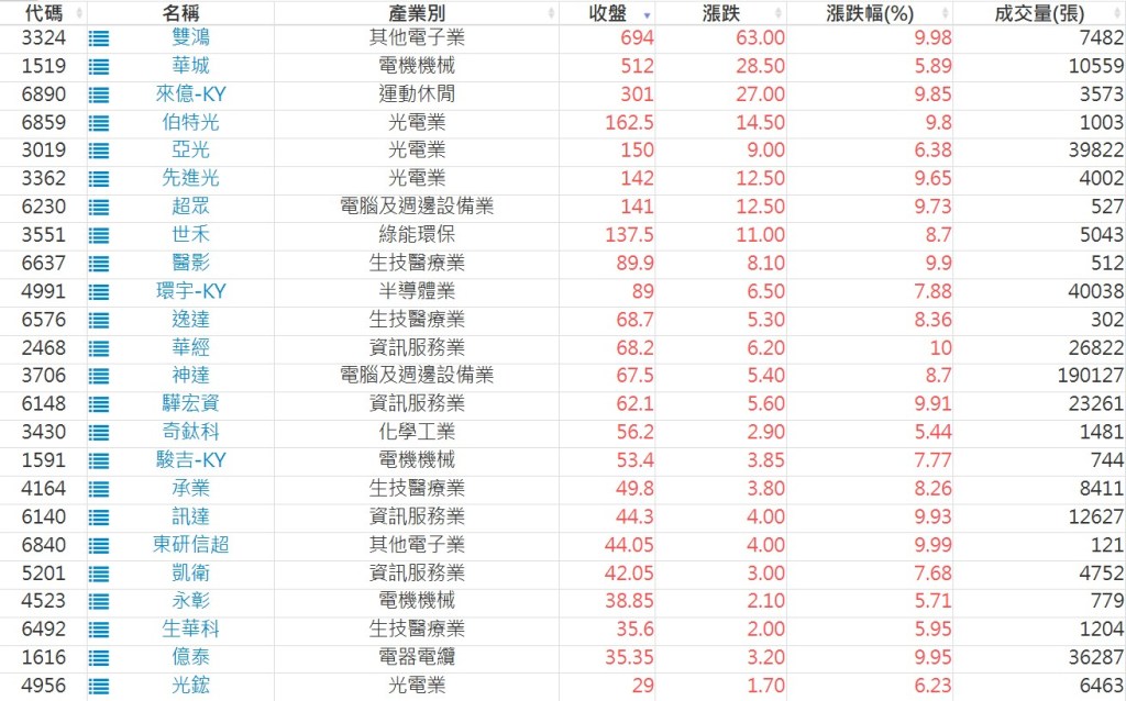 2025-0612日新高爆量上漲股 2025-06-12 股狗網小編 選股條件 發表留言 利用股狗選股的選股條件可以【挑選突破20日新高,爆量上漲起漲點股票】 1.股狗選股 https://www.stockdog.com.tw 2.選股條件: a.收盤價創20日新高 b.當日漲幅 > 2% C.成交量大於5日均量2倍 免責宣言 本網站文章所提供資訊僅供參考,並無任何推介買賣之意,投資人應自行承擔交易風險。 分享此文: 按一下即可分享至 X(在新視窗中開啟) X 按一下以分享至 Facebook(在新視窗中開啟) Facebook 喜歡 正在載入...