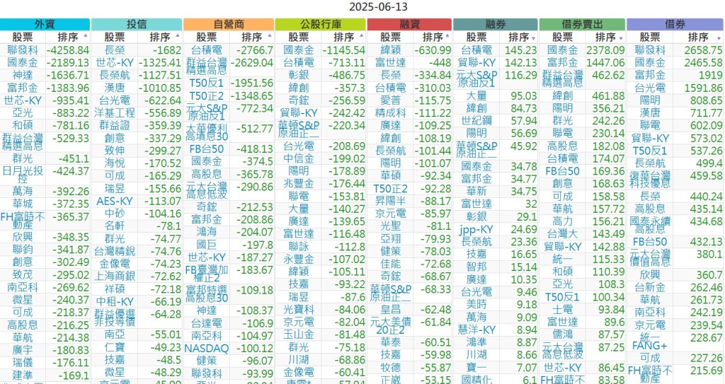 2025-0613【外資、投信】買賣超個股 2025-06-14 股狗網小編 投資誌-大盤 發表留言 上市:【外資、投信】買超(依金額) (單位:百萬) 上市:【外資、投信】賣超(依金額) (單位:百萬) 上市:【外資、投信】買超(依張數) (單位:張數) 上市:【外資、投信】賣超(依張數) (單位:張數) 免責宣言 本網站文章所提供資訊僅供參考,並無任何推介買賣之意,投資人應自行承擔交易風險。 分享此文: 按一下即可分享至 X(在新視窗中開啟) X 按一下以分享至 Facebook(在新視窗中開啟) Facebook 喜歡 正在載入...