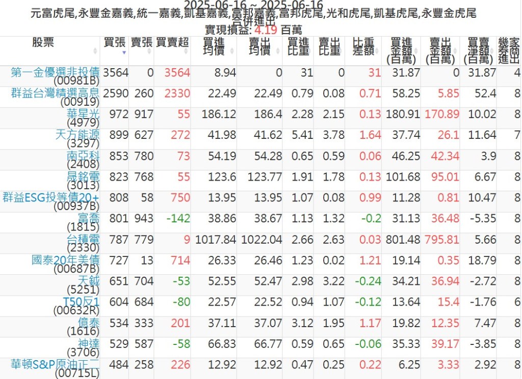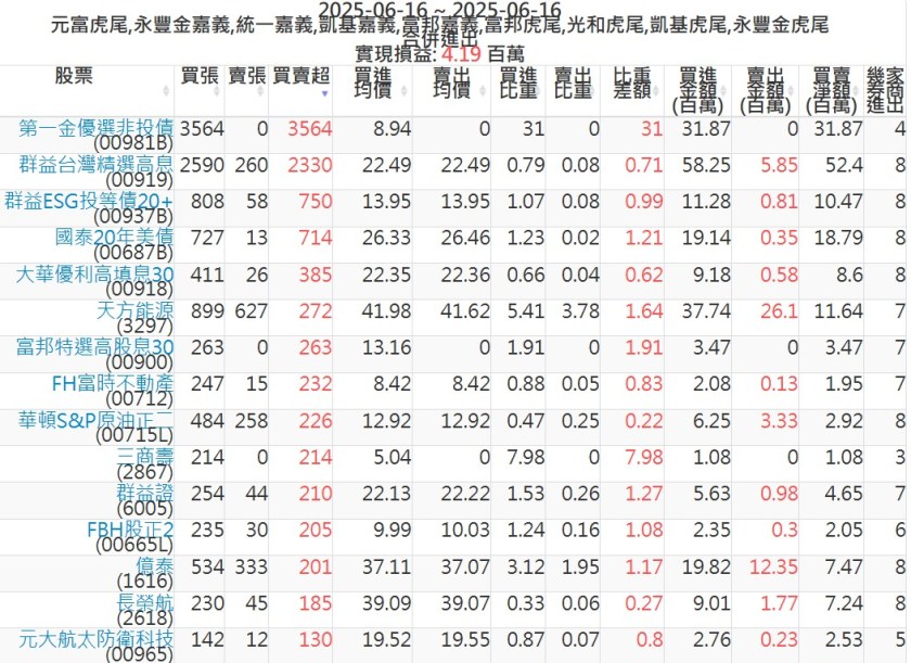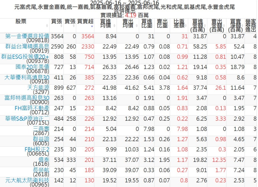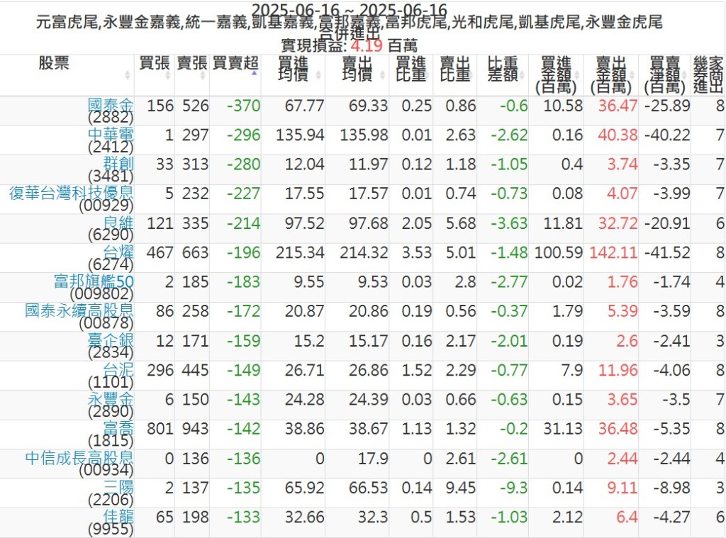 2025-0616主力買賣超個股 2025-06-16 股狗網小編 籌碼面每日資訊 發表留言 可參考下文 『如何查詢當沖、隔日沖分公司券商買賣』 主力當沖券商: 『元富虎尾』,『永豐金嘉義』,『統一嘉義』,『凱基嘉義』,『富邦嘉義』,『富邦虎尾』,『光和虎尾』,『凱基虎尾』,『永豐金虎尾』。 『當沖標的』 『買超股票』 『賣超股票』 免責宣言 本網站文章所提供資訊僅供參考,並無任何推介買賣之意,投資人應自行承擔交易風險。 分享此文: 按一下即可分享至 X(在新視窗中開啟) X 按一下以分享至 Facebook(在新視窗中開啟) Facebook 喜歡 正在載入...
