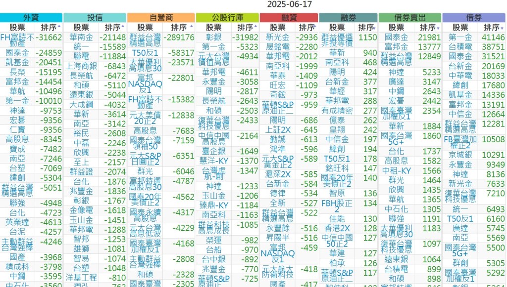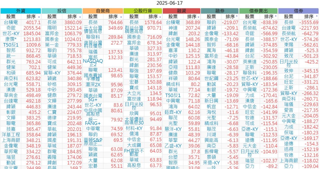 2025-0617【外資、投信】買賣超個股 2025-06-17 股狗網小編 投資誌-大盤 發表留言 上市:【外資、投信】買超(依金額) (單位:百萬) 上市:【外資、投信】賣超(依金額) (單位:百萬) 上市:【外資、投信】買超(依張數) (單位:張數) 上市:【外資、投信】賣超(依張數) (單位:張數) 免責宣言 本網站文章所提供資訊僅供參考,並無任何推介買賣之意,投資人應自行承擔交易風險。 分享此文: 按一下即可分享至 X(在新視窗中開啟) X 按一下以分享至 Facebook(在新視窗中開啟) Facebook 喜歡 正在載入...