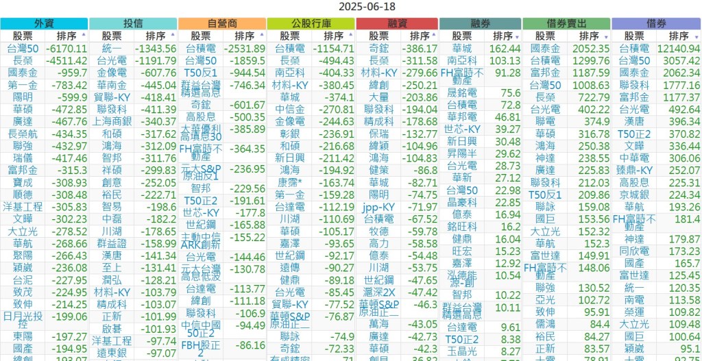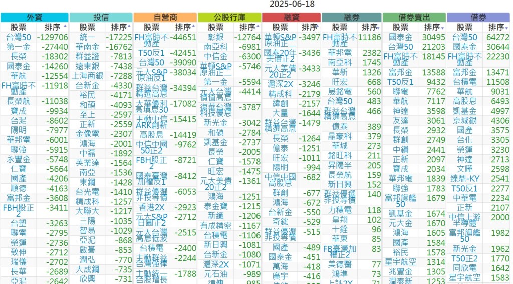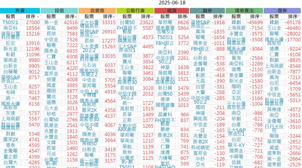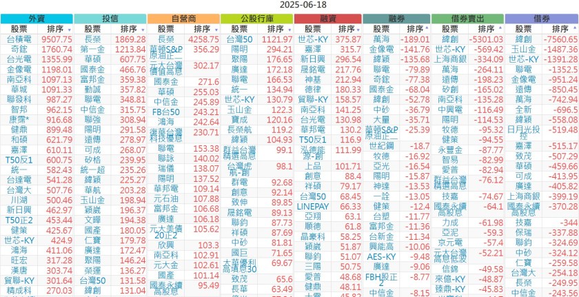 2025-0618【外資、投信】買賣超個股 2025-06-18 股狗網小編 投資誌-大盤 發表留言 上市:【外資、投信】買超(依金額) (單位:百萬) 上市:【外資、投信】賣超(依金額) (單位:百萬) 上市:【外資、投信】買超(依張數) (單位:張數) 上市:【外資、投信】賣超(依張數) (單位:張數) 免責宣言 本網站文章所提供資訊僅供參考,並無任何推介買賣之意,投資人應自行承擔交易風險。 分享此文: 按一下即可分享至 X(在新視窗中開啟) X 按一下以分享至 Facebook(在新視窗中開啟) Facebook 喜歡 正在載入...