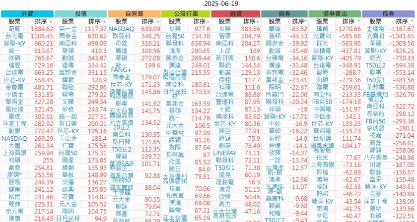 2025-0619【外資、投信】買賣超個股 2025-06-19 股狗網小編 投資誌-大盤 發表留言 上市:【外資、投信】買超(依金額) (單位:百萬) 上市:【外資、投信】賣超(依金額) (單位:百萬) 上市:【外資、投信】買超(依張數) (單位:張數) 上市:【外資、投信】賣超(依張數) (單位:張數) 免責宣言 本網站文章所提供資訊僅供參考,並無任何推介買賣之意,投資人應自行承擔交易風險。 分享此文: 按一下即可分享至 X(在新視窗中開啟) X 按一下以分享至 Facebook(在新視窗中開啟) Facebook 喜歡 正在載入...