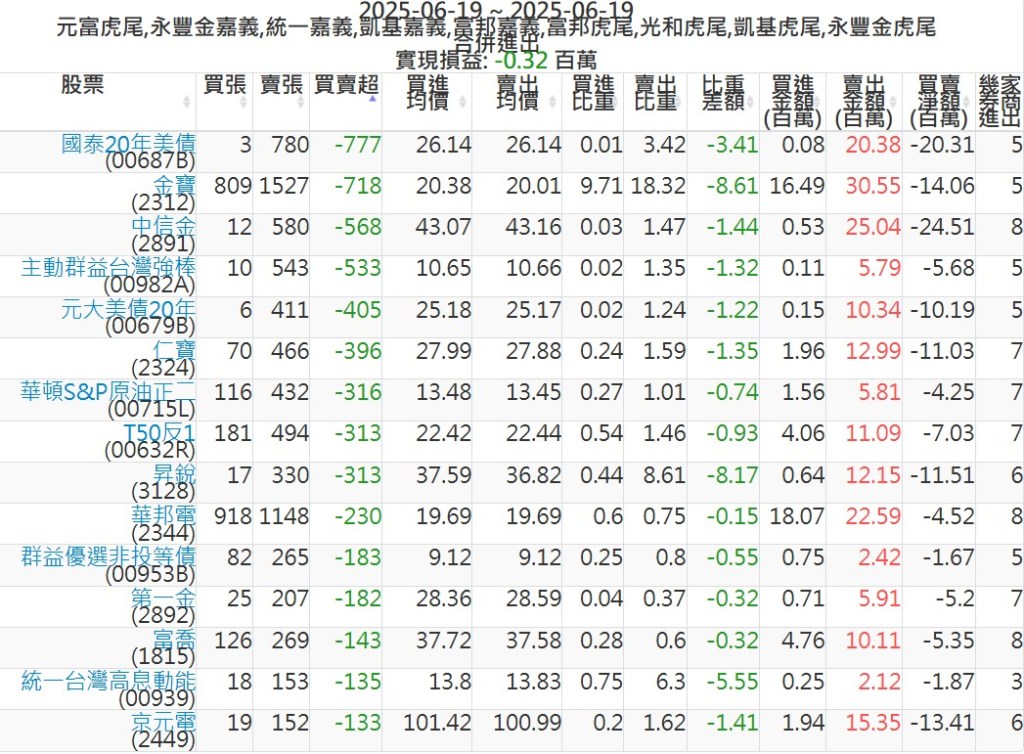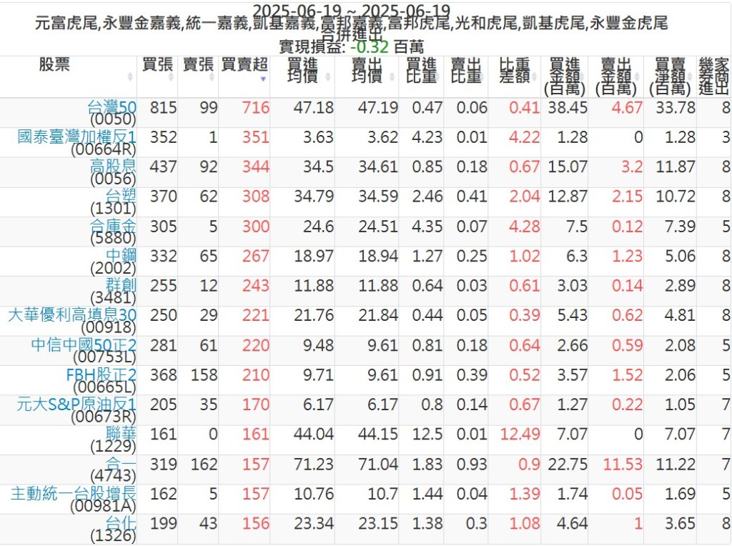 2025-0619主力買賣超個股 2025-06-19 股狗網小編 籌碼面每日資訊 發表留言 可參考下文 『如何查詢當沖、隔日沖分公司券商買賣』 主力當沖券商: 『元富虎尾』,『永豐金嘉義』,『統一嘉義』,『凱基嘉義』,『富邦嘉義』,『富邦虎尾』,『光和虎尾』,『凱基虎尾』,『永豐金虎尾』。 『當沖標的』 『買超股票』 『賣超股票』 免責宣言 本網站文章所提供資訊僅供參考,並無任何推介買賣之意,投資人應自行承擔交易風險。 分享此文: 按一下即可分享至 X(在新視窗中開啟) X 按一下以分享至 Facebook(在新視窗中開啟) Facebook 喜歡 正在載入...