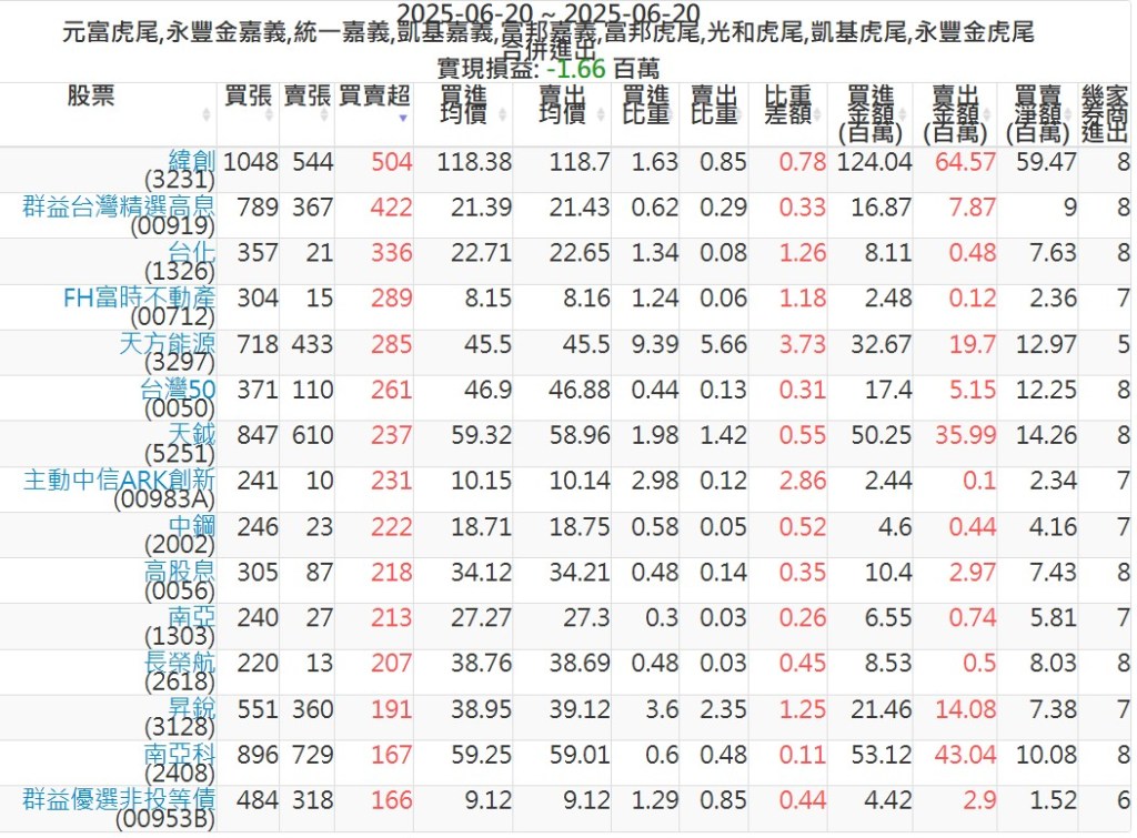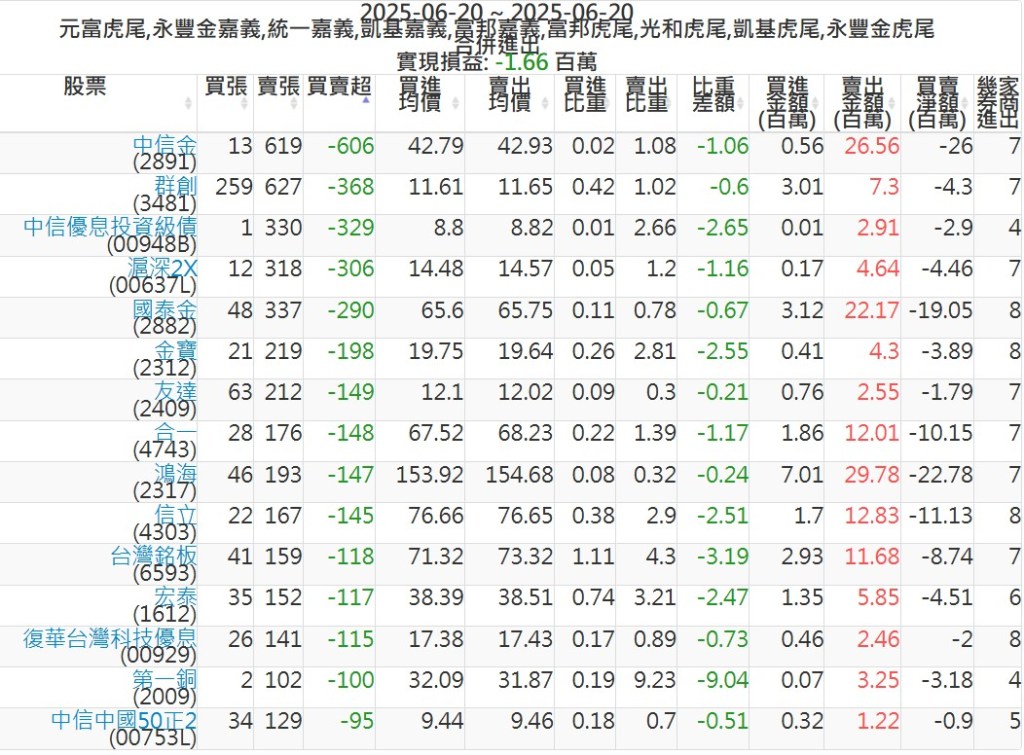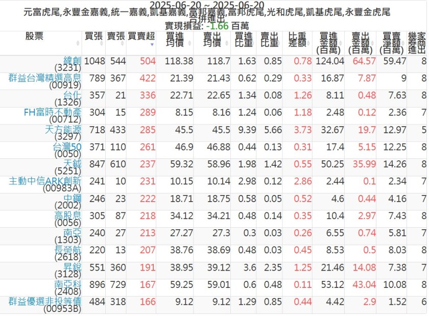 2025-0620主力買賣超個股 2025-06-20 股狗網小編 籌碼面每日資訊 發表留言 可參考下文 『如何查詢當沖、隔日沖分公司券商買賣』 主力當沖券商: 『元富虎尾』,『永豐金嘉義』,『統一嘉義』,『凱基嘉義』,『富邦嘉義』,『富邦虎尾』,『光和虎尾』,『凱基虎尾』,『永豐金虎尾』。 『當沖標的』 『買超股票』 『賣超股票』 免責宣言 本網站文章所提供資訊僅供參考,並無任何推介買賣之意,投資人應自行承擔交易風險。 分享此文: 按一下即可分享至 X(在新視窗中開啟) X 按一下以分享至 Facebook(在新視窗中開啟) Facebook 喜歡 正在載入...