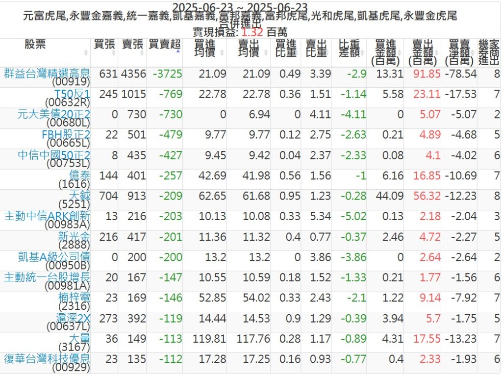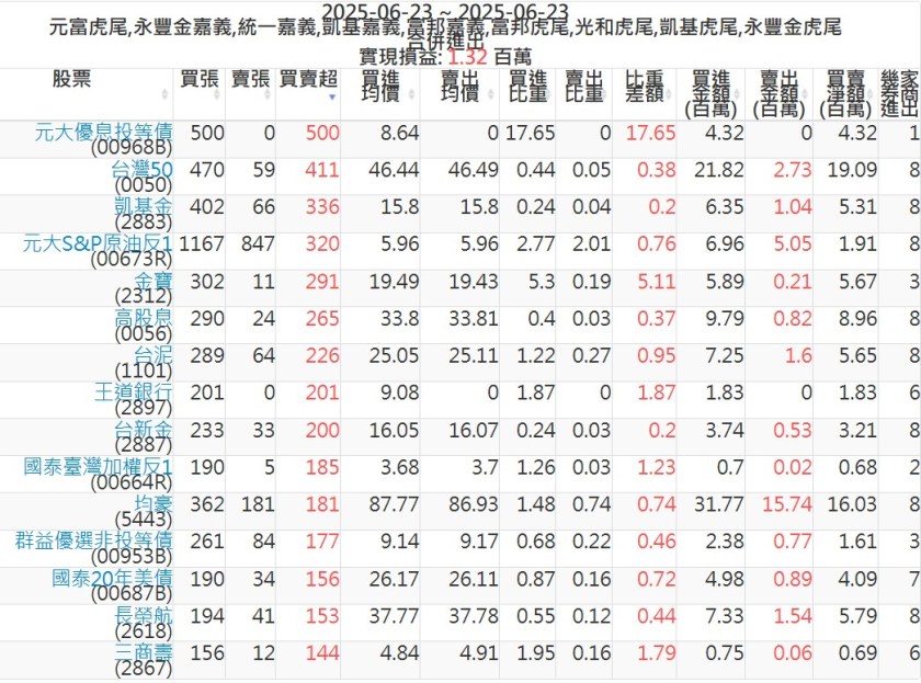 2025-0623主力買賣超個股 2025-06-23 股狗網小編 籌碼面每日資訊 發表留言 可參考下文 『如何查詢當沖、隔日沖分公司券商買賣』 主力當沖券商: 『元富虎尾』,『永豐金嘉義』,『統一嘉義』,『凱基嘉義』,『富邦嘉義』,『富邦虎尾』,『光和虎尾』,『凱基虎尾』,『永豐金虎尾』。 『當沖標的』 『買超股票』 『賣超股票』 免責宣言 本網站文章所提供資訊僅供參考,並無任何推介買賣之意,投資人應自行承擔交易風險。 分享此文: 按一下即可分享至 X(在新視窗中開啟) X 按一下以分享至 Facebook(在新視窗中開啟) Facebook 喜歡 正在載入...