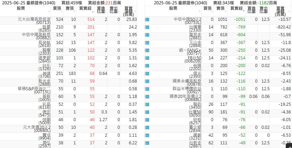 2025-0625關鍵券商買賣超 2025-06-25 股狗網小編 籌碼面每日資訊 發表留言 關鍵券商買賣超: 臺銀證券(1040): 台灣摩根士丹利(1470): 凱基台北(9268): 凱基信義(9216): 元大土城永寧(9875): 康和永和(845B) : 富邦建國(9658): 免責宣言 本網站文章所提供資訊僅供參考,並無任何推介買賣之意,投資人應自行承擔交易風險。 分享此文: 分享到 X(在新視窗中開啟) X 分享到 Facebook(在新視窗中開啟) Facebook 喜歡 正在載入...