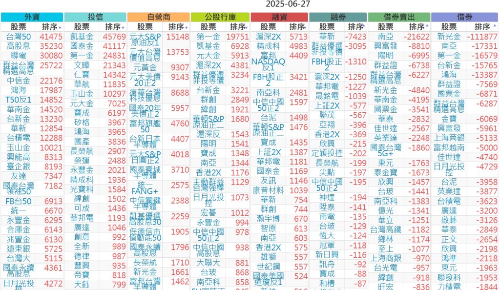 2025-0627【外資、投信】買賣超個股 2025-06-27 股狗網小編 投資誌-大盤 發表留言 上市:【外資、投信】買超(依金額) (單位:百萬) 上市:【外資、投信】賣超(依金額) (單位:百萬) 上市:【外資、投信】買超(依張數) (單位:張數) 上市:【外資、投信】賣超(依張數) (單位:張數) 免責宣言 本網站文章所提供資訊僅供參考,並無任何推介買賣之意,投資人應自行承擔交易風險。 分享此文: 按一下即可分享至 X(在新視窗中開啟) X 按一下以分享至 Facebook(在新視窗中開啟) Facebook 喜歡 正在載入...