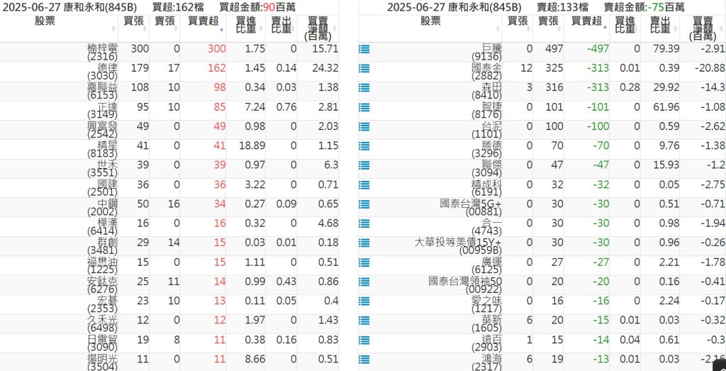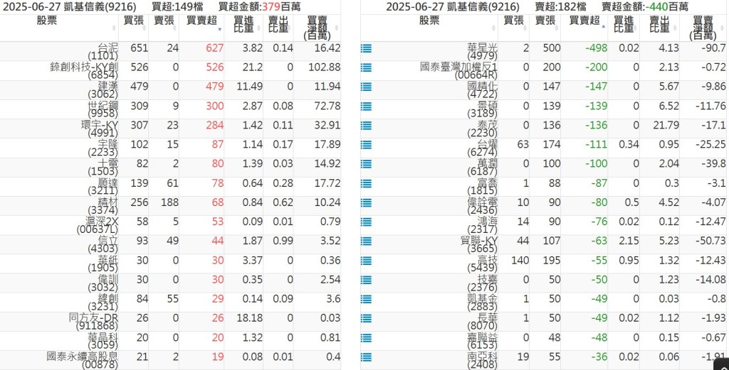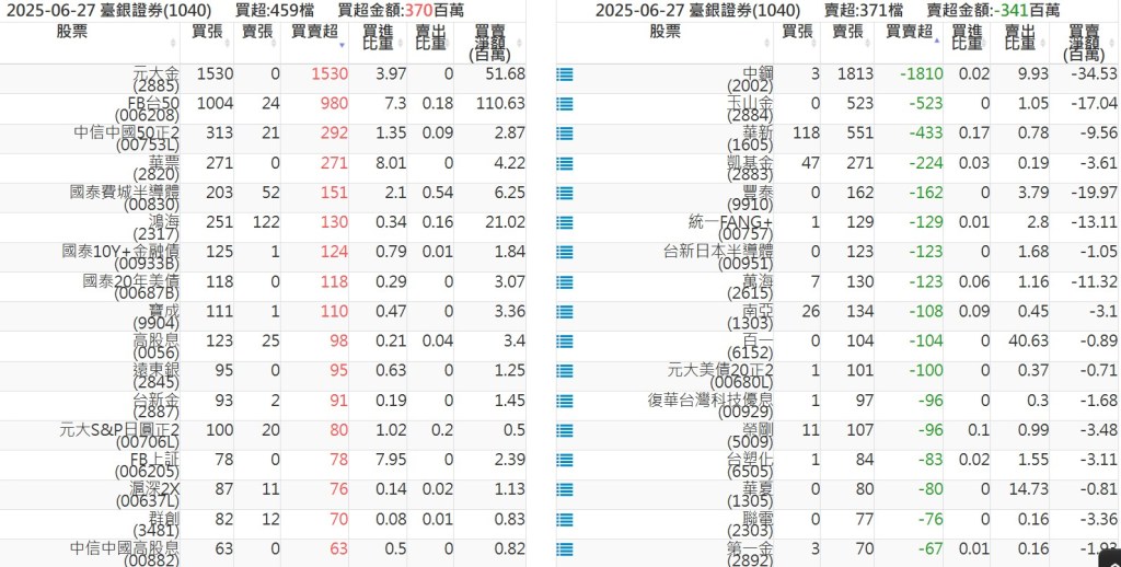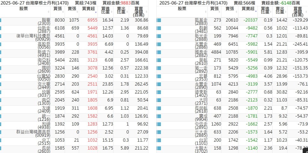 2025-0627關鍵券商買賣超 2025-06-27 股狗網小編 籌碼面每日資訊 發表留言 關鍵券商買賣超: 臺銀證券(1040): 台灣摩根士丹利(1470): 凱基台北(9268): 凱基信義(9216): 元大土城永寧(9875): 康和永和(845B) : 富邦建國(9658): 免責宣言 本網站文章所提供資訊僅供參考,並無任何推介買賣之意,投資人應自行承擔交易風險。 分享此文: 按一下即可分享至 X(在新視窗中開啟) X 按一下以分享至 Facebook(在新視窗中開啟) Facebook 喜歡 正在載入...