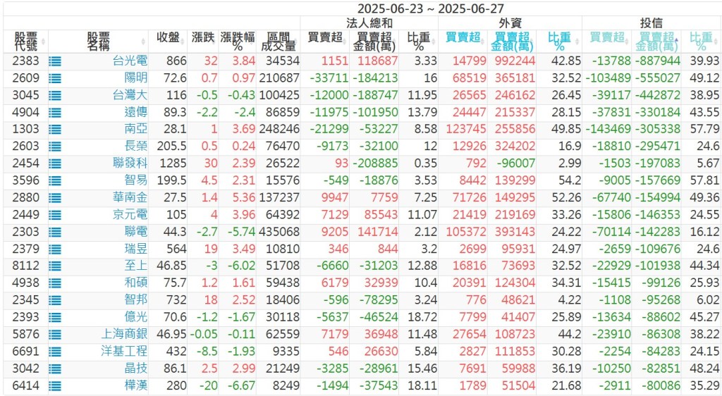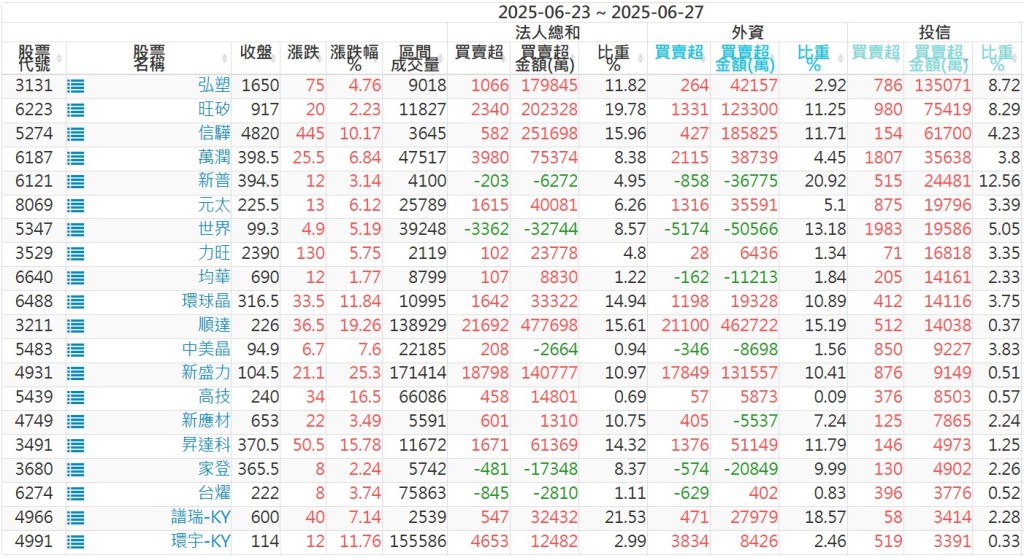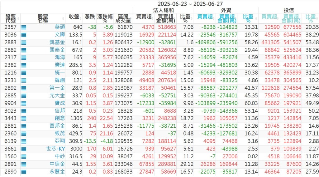 2025/06/23~2025/06/27近5日【投信】買賣超個股 2025-06-29 股狗網小編 投資誌-大盤 發表留言 【上市投信買超個股】(以金額排行,單位:萬) 【上市投信賣超個股】(以金額排行,單位:萬) 【上櫃投信買超個股】(以金額排行,單位:萬) 【上櫃投信賣超個股】(以金額排行,單位:萬) 免責宣言 本網站文章所提供資訊僅供參考,並無任何推介買賣之意,投資人應自行承擔交易風險。 分享此文: 按一下即可分享至 X(在新視窗中開啟) X 按一下以分享至 Facebook(在新視窗中開啟) Facebook 喜歡 正在載入...