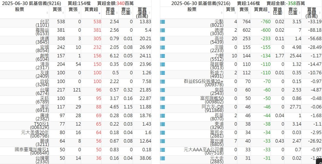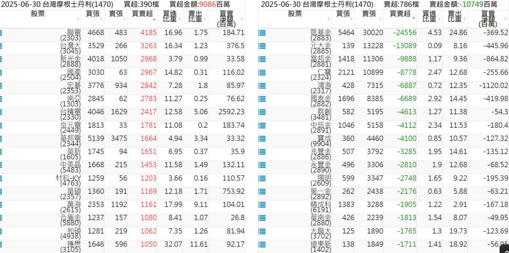 2025-0630關鍵券商買賣超 2025-06-30 股狗網小編 籌碼面每日資訊 發表留言 關鍵券商買賣超: 臺銀證券(1040): 台灣摩根士丹利(1470): 凱基台北(9268): 凱基信義(9216): 元大土城永寧(9875): 康和永和(845B) : 富邦建國(9658): 免責宣言 本網站文章所提供資訊僅供參考,並無任何推介買賣之意,投資人應自行承擔交易風險。 分享此文: 按一下即可分享至 X(在新視窗中開啟) X 按一下以分享至 Facebook(在新視窗中開啟) Facebook 喜歡 正在載入...