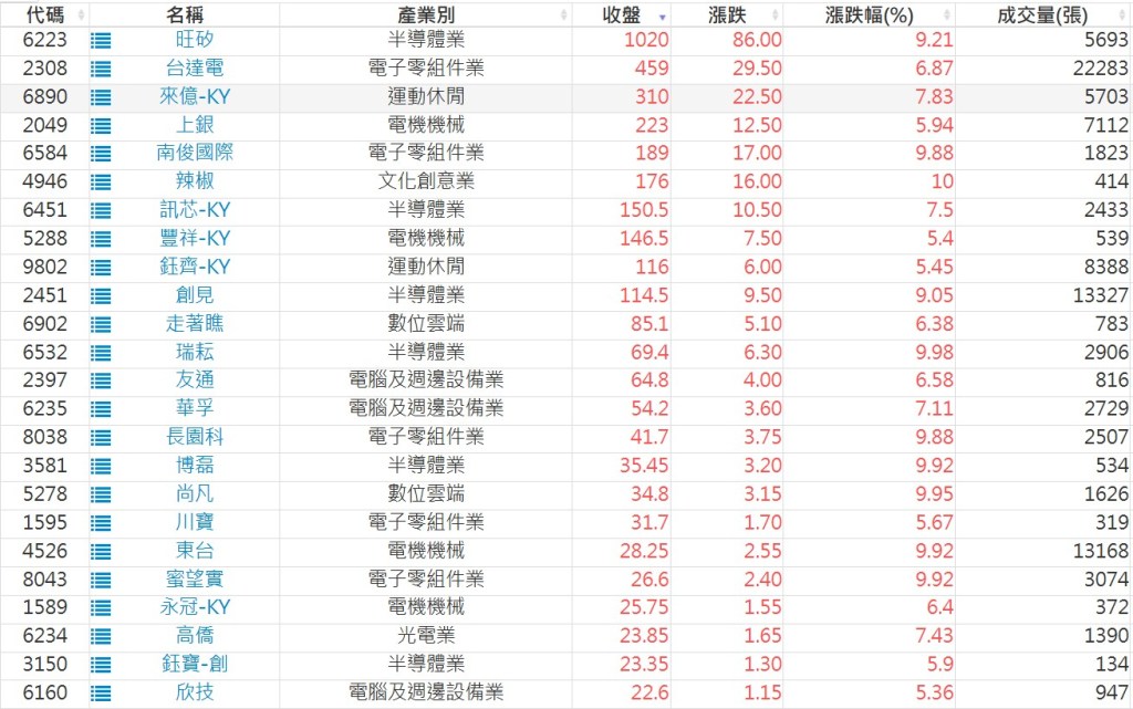 2025-0703日新高爆量上漲股 2025-07-03 股狗網小編 選股條件 發表留言 利用股狗選股的選股條件可以【挑選突破20日新高,爆量上漲起漲點股票】 1.股狗選股 https://www.stockdog.com.tw 2.選股條件: a.收盤價創20日新高 b.當日漲幅 > 2% C.成交量大於5日均量2倍 免責宣言 本網站文章所提供資訊僅供參考,並無任何推介買賣之意,投資人應自行承擔交易風險。 分享此文: 按一下即可分享至 X(在新視窗中開啟) X 按一下以分享至 Facebook(在新視窗中開啟) Facebook 喜歡 正在載入...