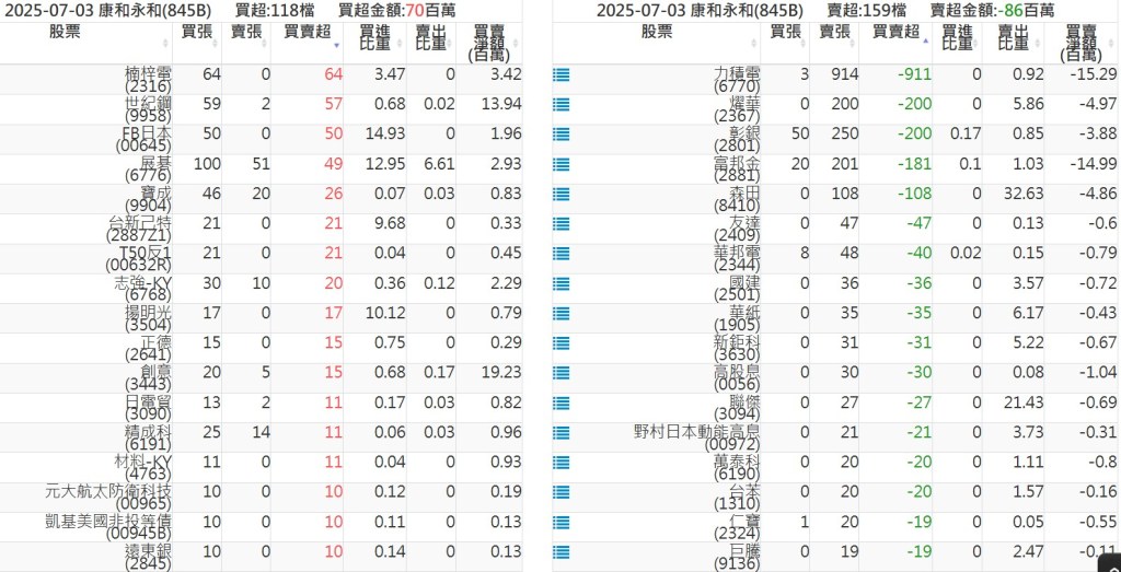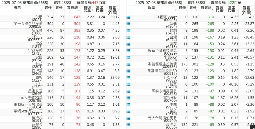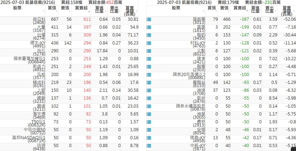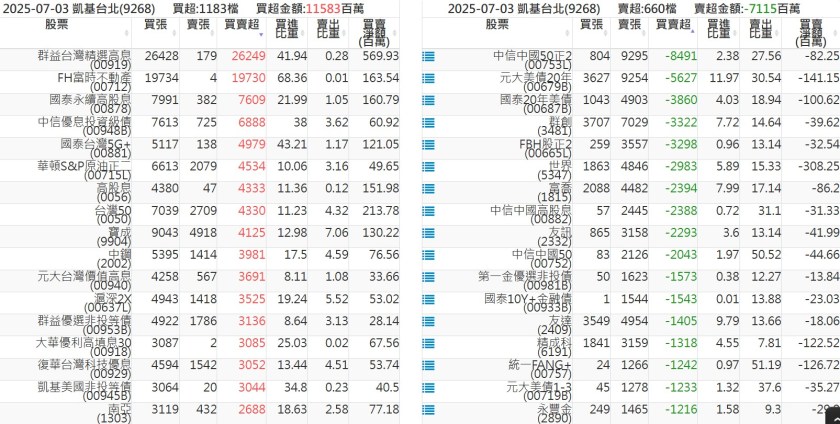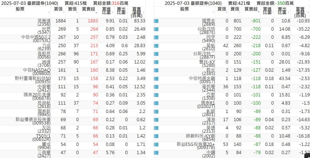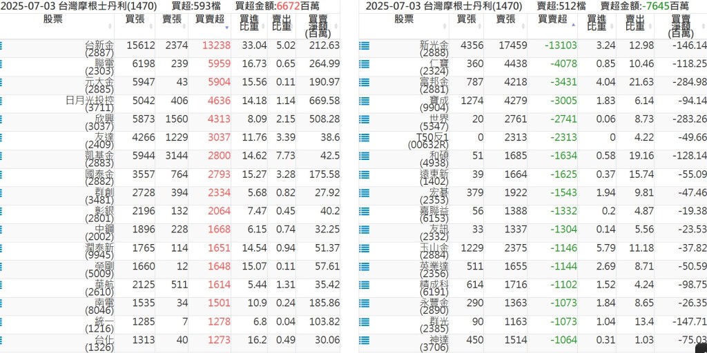 2025-0703關鍵券商買賣超 2025-07-04 股狗網小編 籌碼面每日資訊 發表留言 關鍵券商買賣超: 臺銀證券(1040): 台灣摩根士丹利(1470): 凱基台北(9268): 凱基信義(9216): 元大土城永寧(9875): 康和永和(845B) : 富邦建國(9658): 免責宣言 本網站文章所提供資訊僅供參考,並無任何推介買賣之意,投資人應自行承擔交易風險。 分享此文: 按一下即可分享至 X(在新視窗中開啟) X 按一下以分享至 Facebook(在新視窗中開啟) Facebook 喜歡 正在載入...