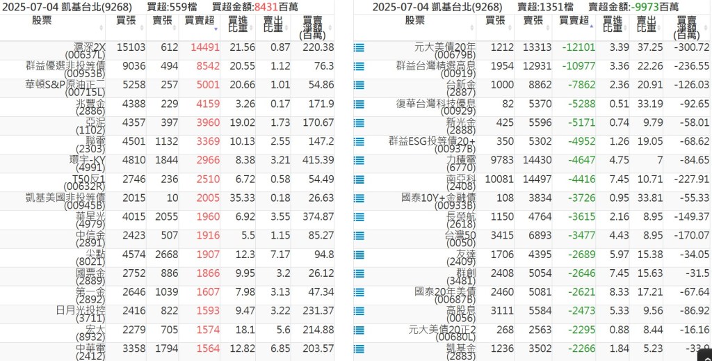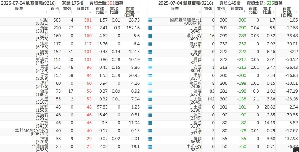 2025-0704關鍵券商買賣超 2025-07-04 股狗網小編 籌碼面每日資訊 發表留言 關鍵券商買賣超: 臺銀證券(1040): 台灣摩根士丹利(1470): 凱基台北(9268): 凱基信義(9216): 元大土城永寧(9875): 康和永和(845B) : 富邦建國(9658): 免責宣言 本網站文章所提供資訊僅供參考,並無任何推介買賣之意,投資人應自行承擔交易風險。 分享此文: 按一下即可分享至 X(在新視窗中開啟) X 按一下以分享至 Facebook(在新視窗中開啟) Facebook 喜歡 正在載入...