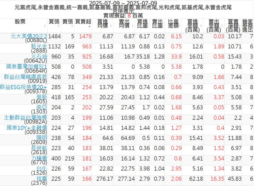 2025-0709主力買賣超個股 2025-07-09 股狗網小編 籌碼面每日資訊 發表留言 可參考下文 『如何查詢當沖、隔日沖分公司券商買賣』 主力當沖券商: 『元富虎尾』,『永豐金嘉義』,『統一嘉義』,『凱基嘉義』,『富邦嘉義』,『富邦虎尾』,『光和虎尾』,『凱基虎尾』,『永豐金虎尾』。 『當沖標的』 『買超股票』 『賣超股票』 免責宣言 本網站文章所提供資訊僅供參考,並無任何推介買賣之意,投資人應自行承擔交易風險。 分享此文: 按一下即可分享至 X(在新視窗中開啟) X 按一下以分享至 Facebook(在新視窗中開啟) Facebook 喜歡 正在載入...