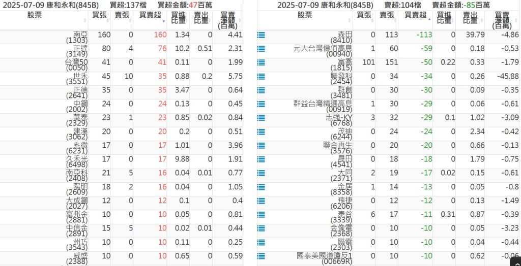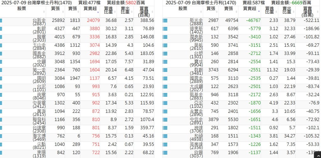 2025-0709關鍵券商買賣超 2025-07-09 股狗網小編 籌碼面每日資訊 發表留言 關鍵券商買賣超: 臺銀證券(1040): 台灣摩根士丹利(1470): 凱基台北(9268): 凱基信義(9216): 元大土城永寧(9875): 康和永和(845B) : 富邦建國(9658): 免責宣言 本網站文章所提供資訊僅供參考,並無任何推介買賣之意,投資人應自行承擔交易風險。 分享此文: 按一下即可分享至 X(在新視窗中開啟) X 按一下以分享至 Facebook(在新視窗中開啟) Facebook 喜歡 正在載入...