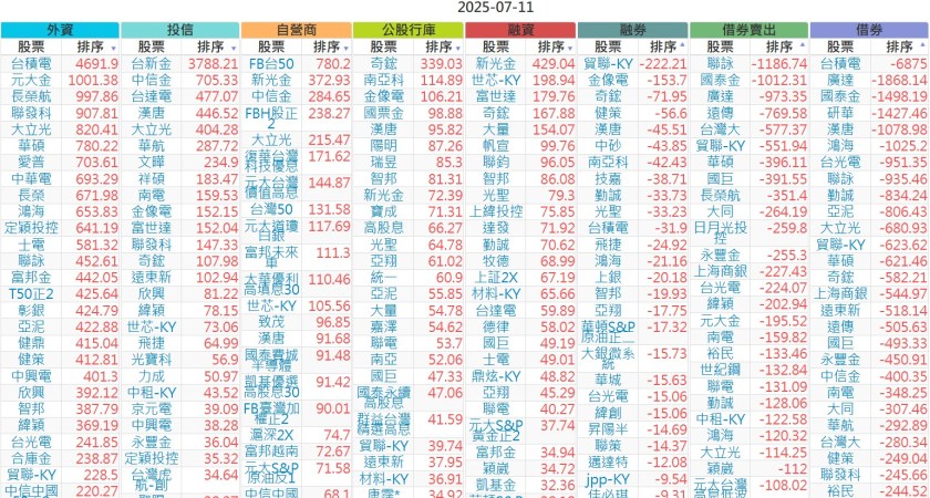 2025-0711【外資、投信】買賣超個股 2025-07-11 股狗網小編 投資誌-大盤 發表留言 上市:【外資、投信】買超(依金額) (單位:百萬) 上市:【外資、投信】賣超(依金額) (單位:百萬) 上市:【外資、投信】買超(依張數) (單位:張數) 上市:【外資、投信】賣超(依張數) (單位:張數) 免責宣言 本網站文章所提供資訊僅供參考,並無任何推介買賣之意,投資人應自行承擔交易風險。 分享此文: 按一下即可分享至 X(在新視窗中開啟) X 按一下以分享至 Facebook(在新視窗中開啟) Facebook 喜歡 正在載入...
