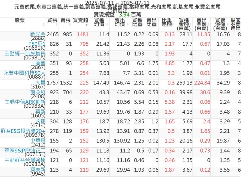 2025-0711主力買賣超個股 2025-07-11 股狗網小編 籌碼面每日資訊 發表留言 可參考下文 『如何查詢當沖、隔日沖分公司券商買賣』 主力當沖券商: 『元富虎尾』,『永豐金嘉義』,『統一嘉義』,『凱基嘉義』,『富邦嘉義』,『富邦虎尾』,『光和虎尾』,『凱基虎尾』,『永豐金虎尾』。 『當沖標的』 『買超股票』 『賣超股票』 免責宣言 本網站文章所提供資訊僅供參考,並無任何推介買賣之意,投資人應自行承擔交易風險。 分享此文: 按一下即可分享至 X(在新視窗中開啟) X 按一下以分享至 Facebook(在新視窗中開啟) Facebook 喜歡 正在載入...