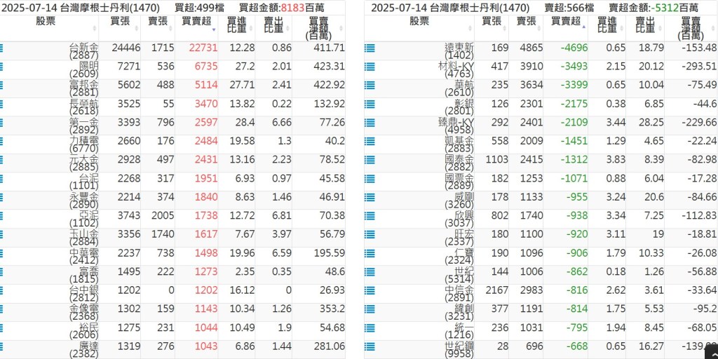 2025-0714關鍵券商買賣超 2025-07-14 股狗網小編 籌碼面每日資訊 發表留言 關鍵券商買賣超: 臺銀證券(1040): 台灣摩根士丹利(1470): 凱基台北(9268): 凱基信義(9216): 元大土城永寧(9875): 康和永和(845B) : 富邦建國(9658): 免責宣言 本網站文章所提供資訊僅供參考,並無任何推介買賣之意,投資人應自行承擔交易風險。 分享此文: 按一下即可分享至 X(在新視窗中開啟) X 按一下以分享至 Facebook(在新視窗中開啟) Facebook 喜歡 正在載入...