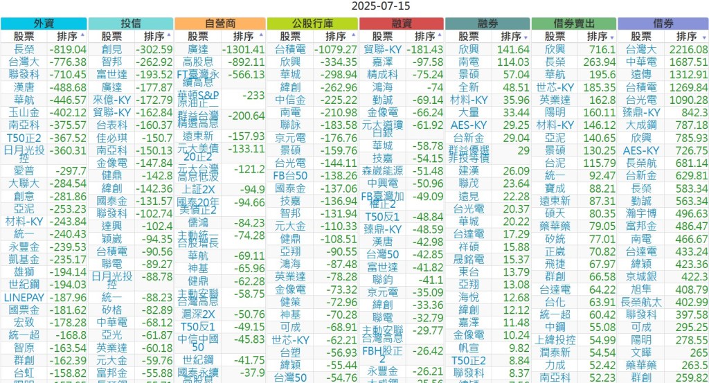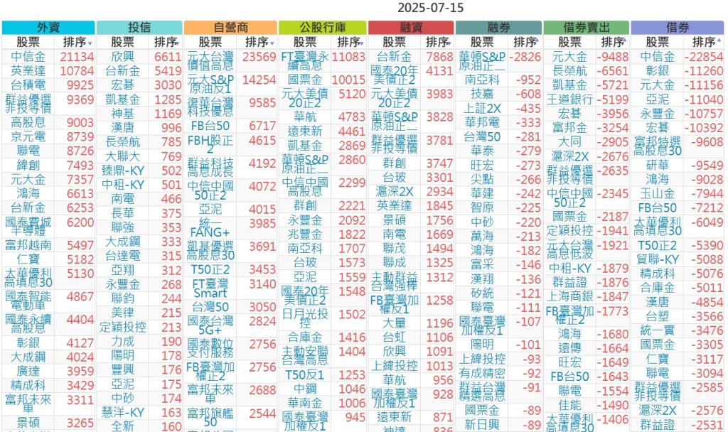 2025-0715【外資、投信】買賣超個股 2025-07-15 股狗網小編 投資誌-大盤 發表留言 上市:【外資、投信】買超(依金額) (單位:百萬) 上市:【外資、投信】賣超(依金額) (單位:百萬) 上市:【外資、投信】買超(依張數) (單位:張數) 上市:【外資、投信】賣超(依張數) (單位:張數) 免責宣言 本網站文章所提供資訊僅供參考,並無任何推介買賣之意,投資人應自行承擔交易風險。 分享此文: 按一下即可分享至 X(在新視窗中開啟) X 按一下以分享至 Facebook(在新視窗中開啟) Facebook 喜歡 正在載入...