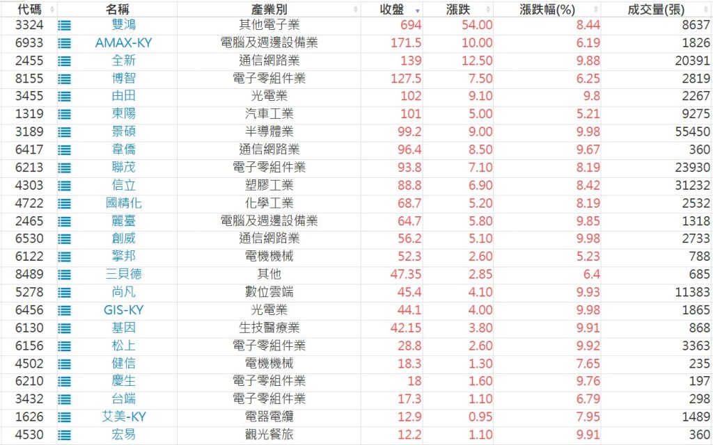 2025-0715日新高爆量上漲股 2025-07-15 股狗網小編 選股條件 發表留言 利用股狗選股的選股條件可以【挑選突破20日新高,爆量上漲起漲點股票】 1.股狗選股 https://www.stockdog.com.tw 2.選股條件: a.收盤價創20日新高 b.當日漲幅 > 2% C.成交量大於5日均量2倍 免責宣言 本網站文章所提供資訊僅供參考,並無任何推介買賣之意,投資人應自行承擔交易風險。 分享此文: 按一下即可分享至 X(在新視窗中開啟) X 按一下以分享至 Facebook(在新視窗中開啟) Facebook 喜歡 正在載入...
