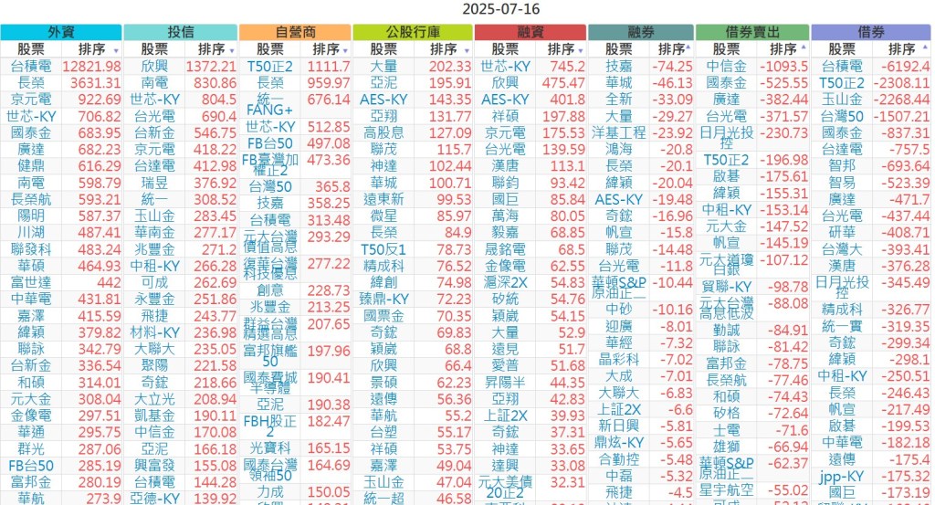 2025-0716【外資、投信】買賣超個股 2025-07-16 股狗網小編 投資誌-大盤 發表留言 上市:【外資、投信】買超(依金額) (單位:百萬) 上市:【外資、投信】賣超(依金額) (單位:百萬) 上市:【外資、投信】買超(依張數) (單位:張數) 上市:【外資、投信】賣超(依張數) (單位:張數) 免責宣言 本網站文章所提供資訊僅供參考,並無任何推介買賣之意,投資人應自行承擔交易風險。 分享此文: 按一下即可分享至 X(在新視窗中開啟) X 按一下以分享至 Facebook(在新視窗中開啟) Facebook 喜歡 正在載入...