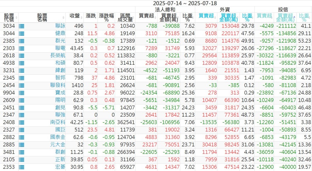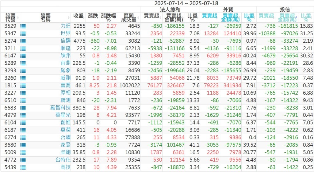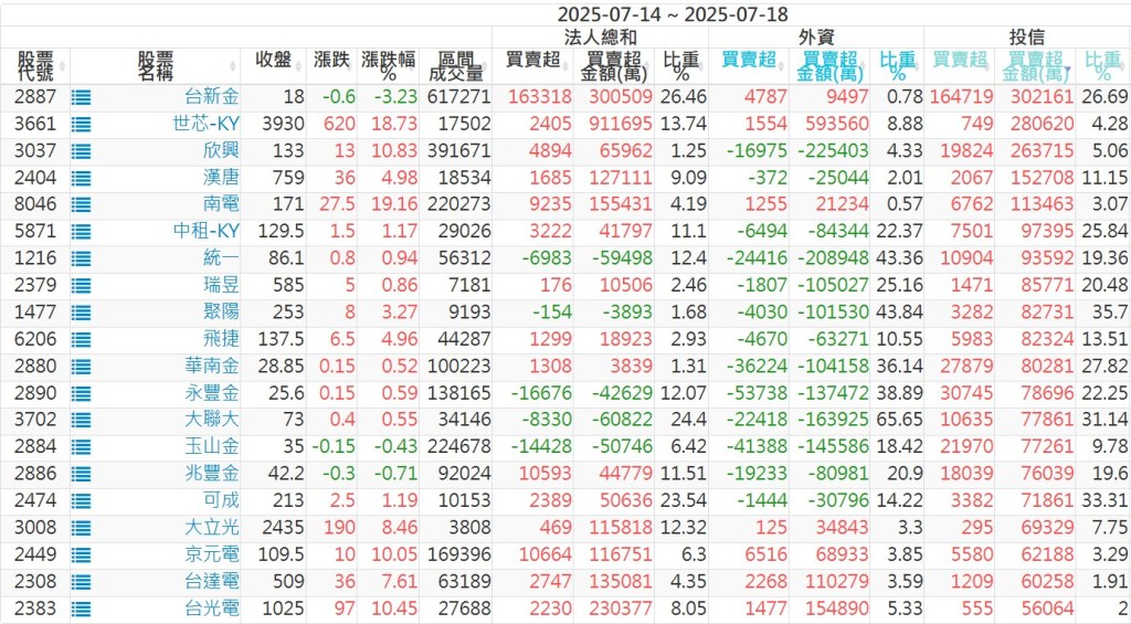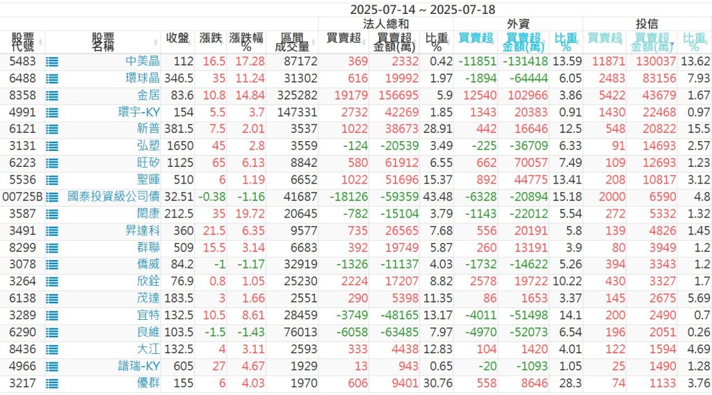 2025/07/14~2025/07/18近5日【投信】買賣超個股 2025-07-20 股狗網小編 投資誌-大盤 發表留言 【上市投信買超個股】(以金額排行,單位:萬) 【上市投信賣超個股】(以金額排行,單位:萬) 【上櫃投信買超個股】(以金額排行,單位:萬) 【上櫃投信賣超個股】(以金額排行,單位:萬) 免責宣言 本網站文章所提供資訊僅供參考,並無任何推介買賣之意,投資人應自行承擔交易風險。 分享此文: 按一下即可分享至 X(在新視窗中開啟) X 按一下以分享至 Facebook(在新視窗中開啟) Facebook 喜歡 正在載入...