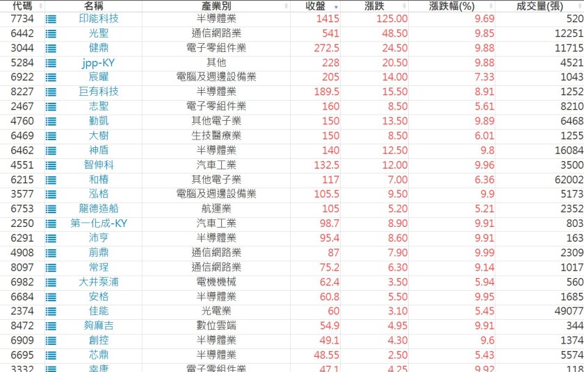 2025-0721日新高爆量上漲股 2025-07-21 股狗網小編 選股條件 發表留言 利用股狗選股的選股條件可以【挑選突破20日新高,爆量上漲起漲點股票】 1.股狗選股 https://www.stockdog.com.tw 2.選股條件: a.收盤價創20日新高 b.當日漲幅 > 2% C.成交量大於5日均量2倍 免責宣言 本網站文章所提供資訊僅供參考,並無任何推介買賣之意,投資人應自行承擔交易風險。 分享此文: 分享到 X(在新視窗中開啟) X 分享到 Facebook(在新視窗中開啟) Facebook 喜歡 正在載入...